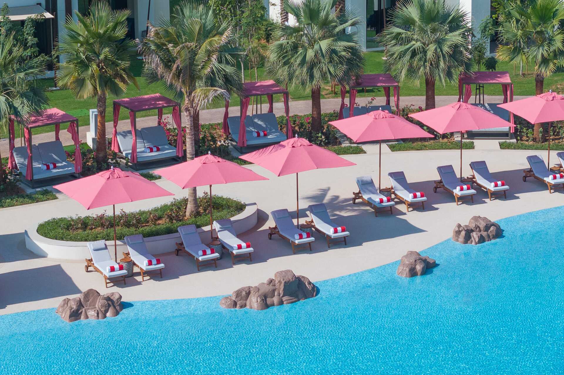 I Ras Al Khaimah har du mulighed for at bo både tæt på stranden og med dejlige poolområder, der egner sig til både familier med børn og par. Her kan du virkelig forkæle dig og hele familien på et af vores hoteller! Hvorfor ikke starte dagen med en dukkert i poolen og slappe lidt af i solstolen, og så spadsere lige ned til den private sandstrand.