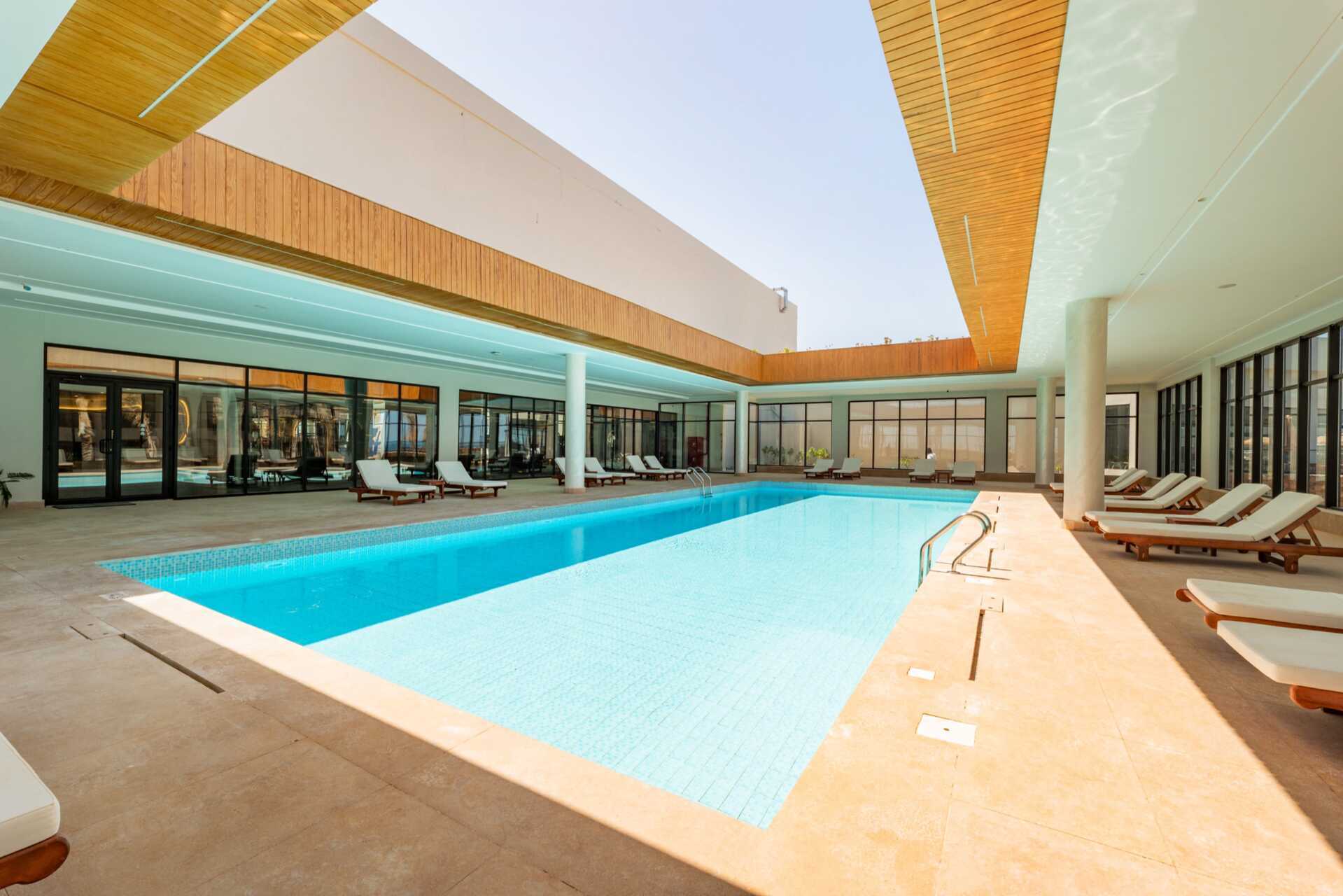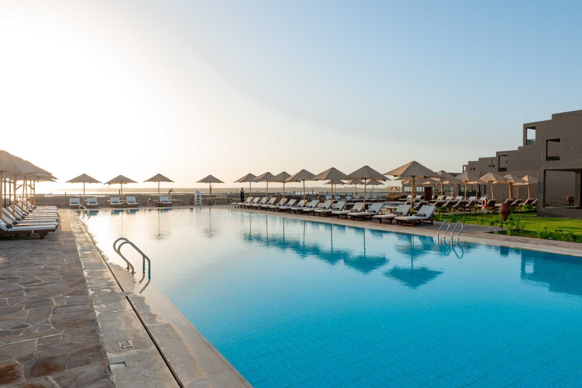 Hotellet har to pools, hvoraf det ene er en afslapningpool, der er opvarmet til 22 grader om vinteren – dog kan pooltemperaturen falde et par grader morgen, aften og i dårligt vejr. Der er også et vandland med flere vandrutsjebaner og en kunstig lagune med saltvand. Pool- og strandbar. Ved havet er der en mole til svømning og snorkling.