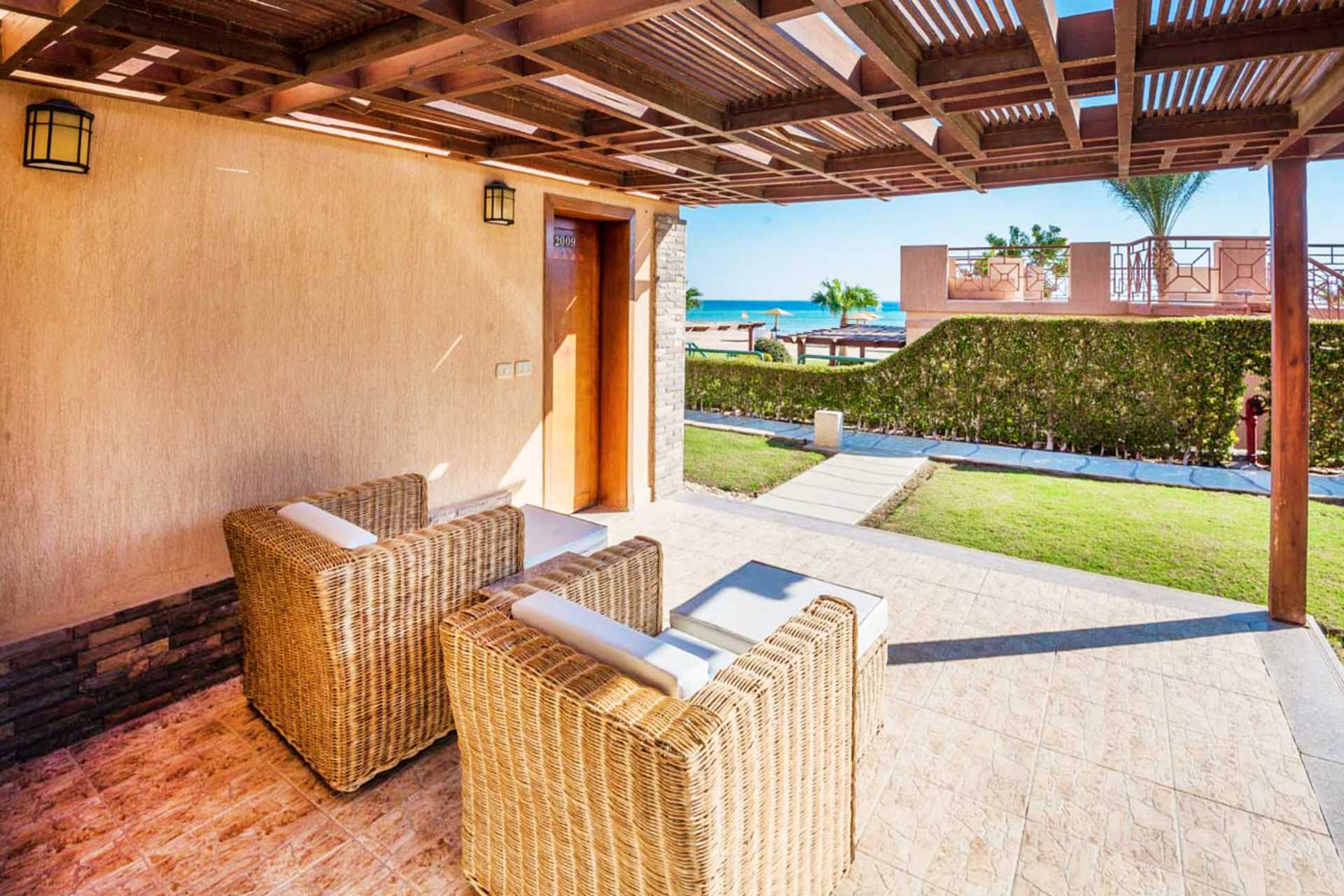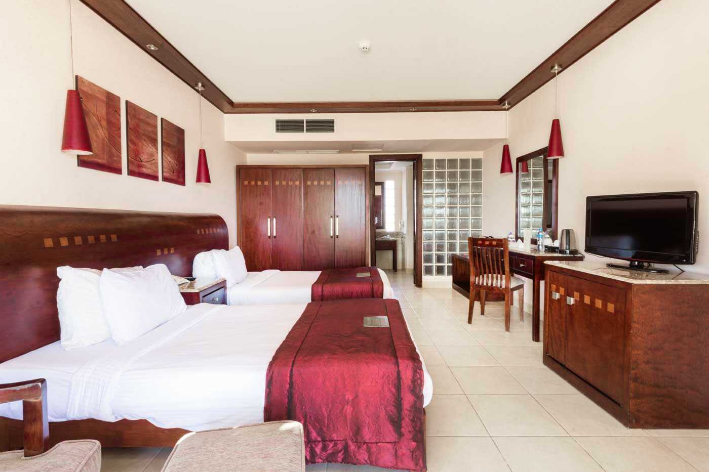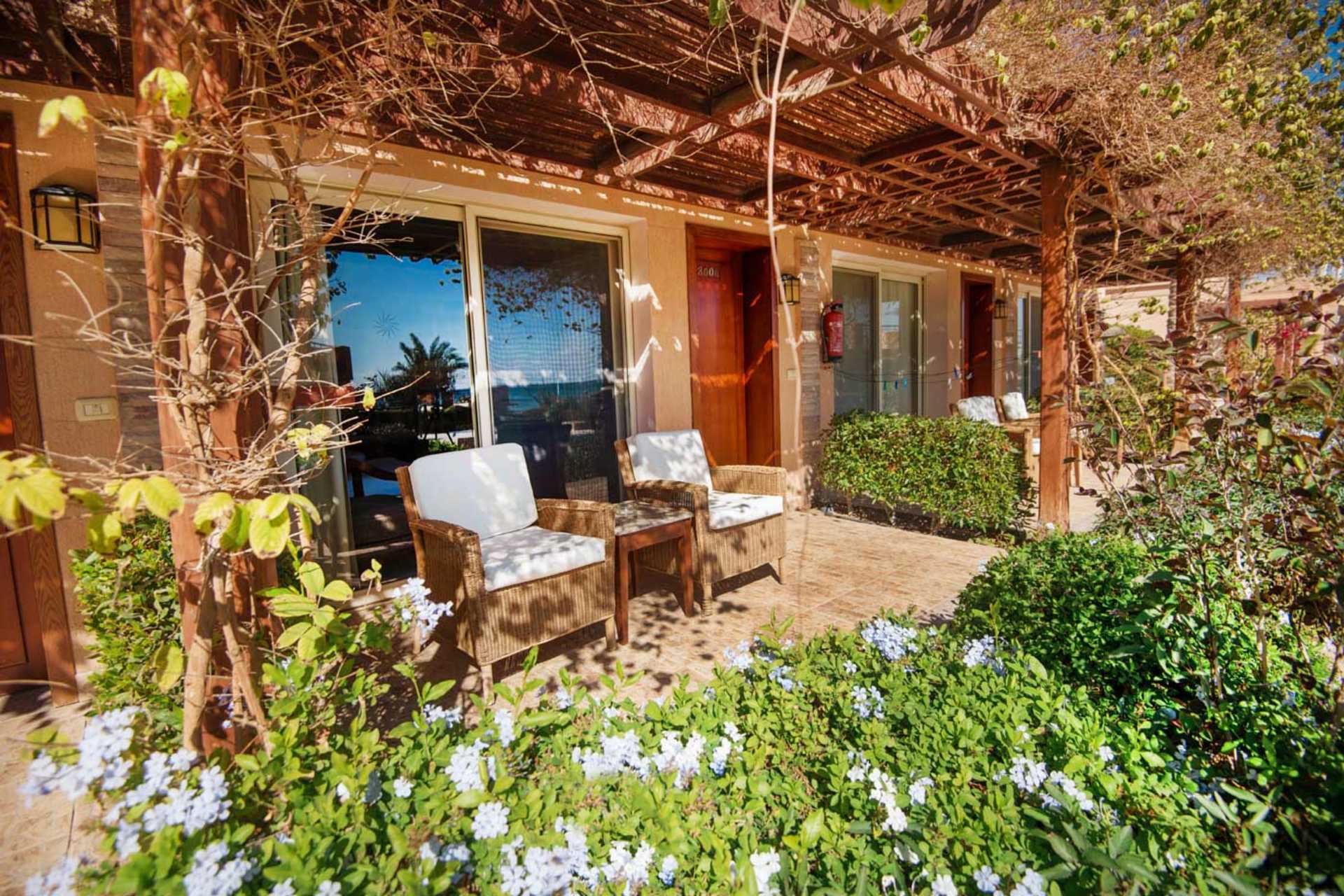 Dobbeltværelse med terrasse i stueplan og delvis havudsigt. En dobbeltseng eller to enkeltsenge. Gratis wifi, aircondition og deponering. Minibar er inkluderet med alkoholfrie drikkevarer, som genopfyldes dagligt. El-kedel og kaffe/te. Tv med internationale kanaler. Badekåber og tøfler. Hårtørrer. Badkar med bruser og toilet. Rengøring 7 gange om ugen.