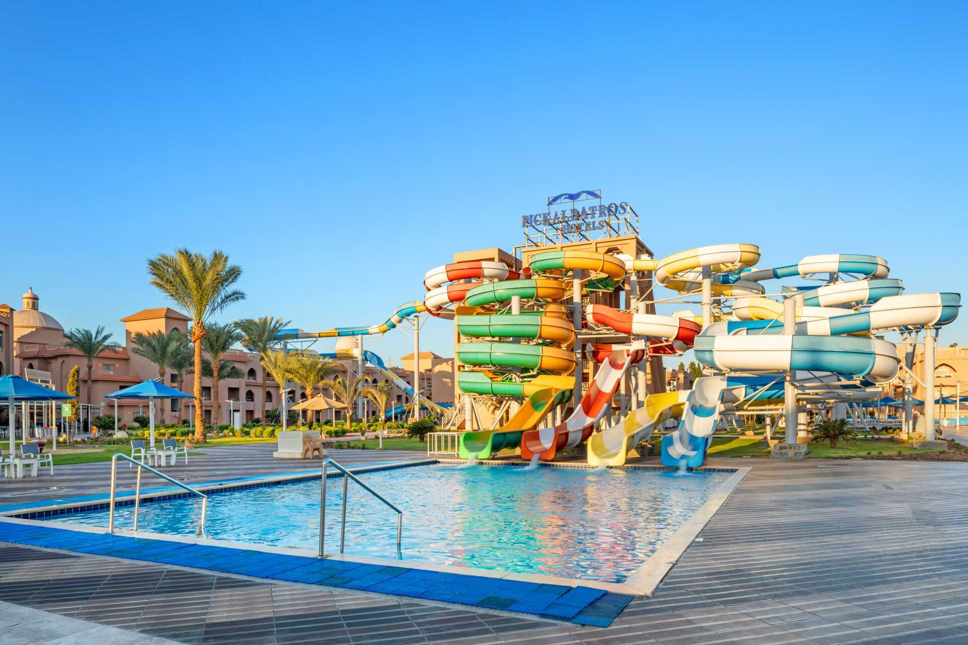 Solstole, Vandrutsjebane, Børnepool, Parasoller, Poolhåndklæder, Pool, Opvarmet pool