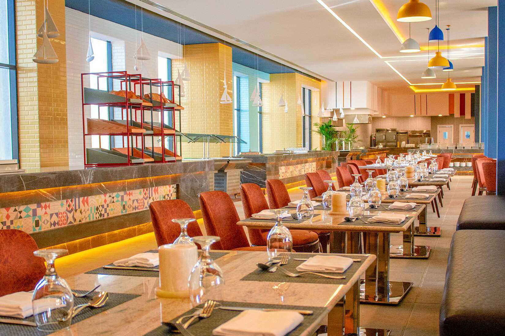 Mange forskellige restauranter i området, alt fra internationale buffeter, fastfood og en tysk restaurant til italienske og asiatiske restauranter. Flere barer rundt omkring på området, hvoraf lobbybarerne er åbne 24 timer i døgnet.