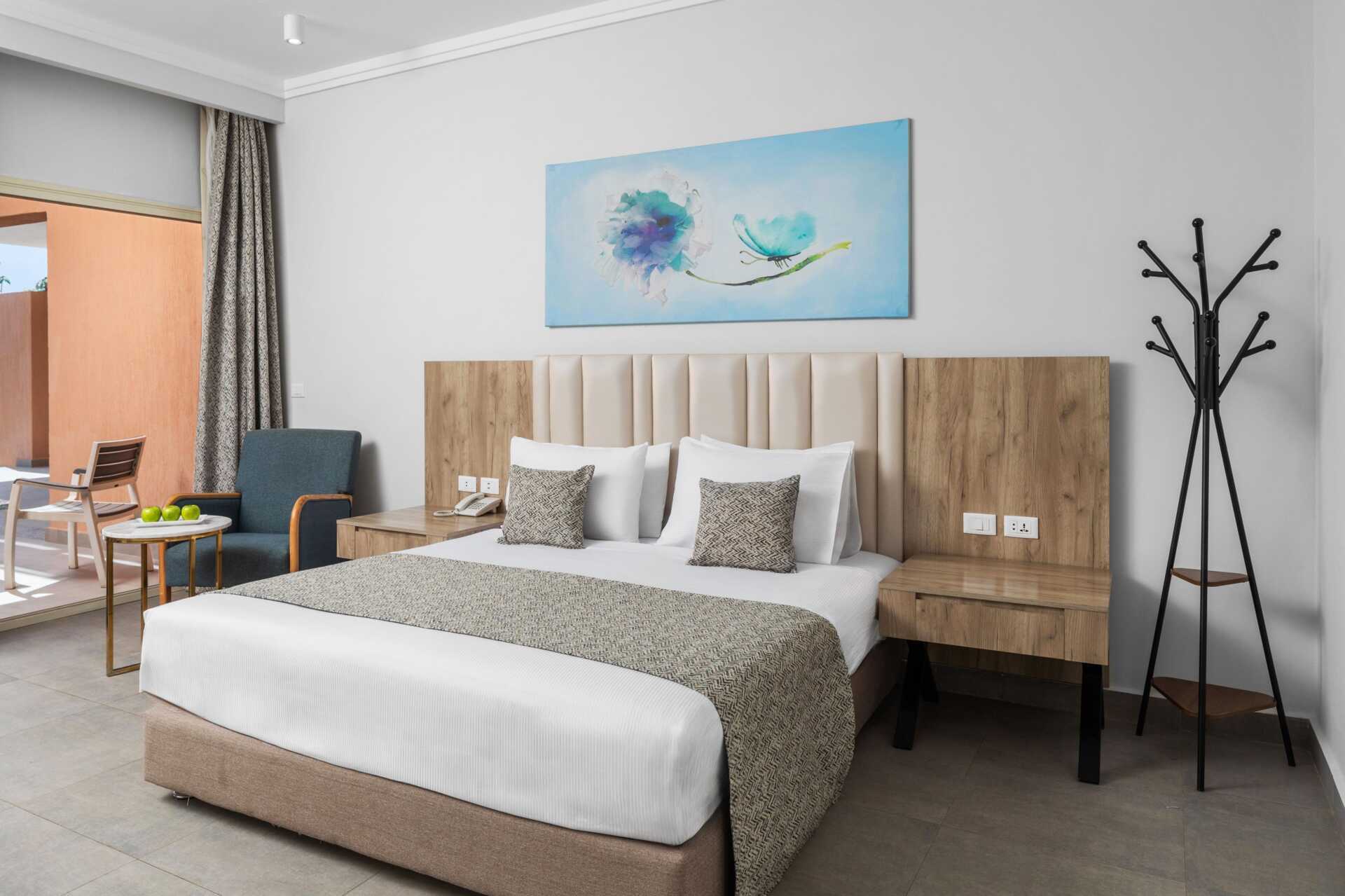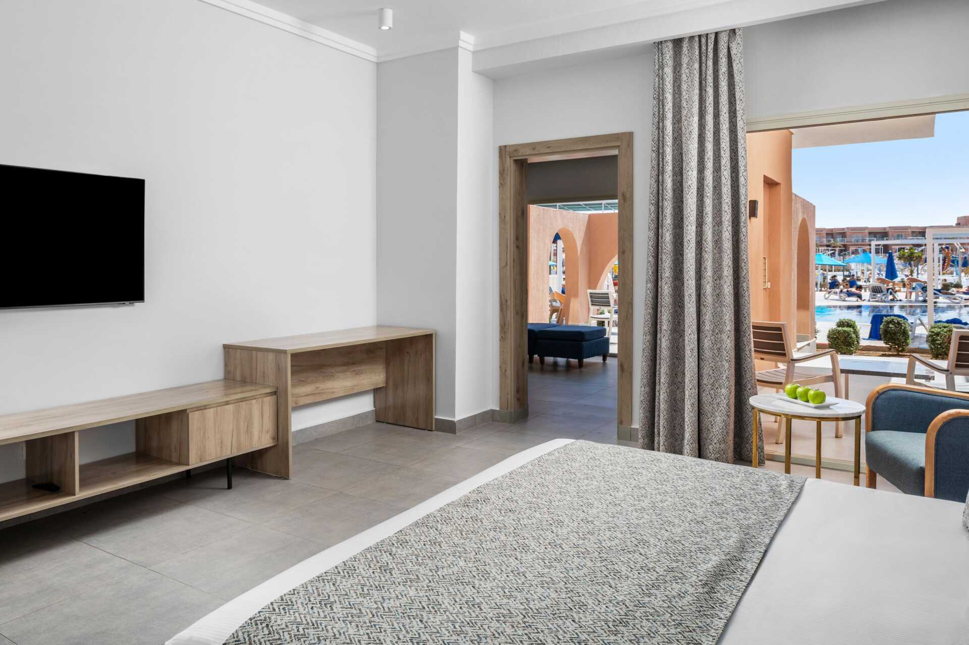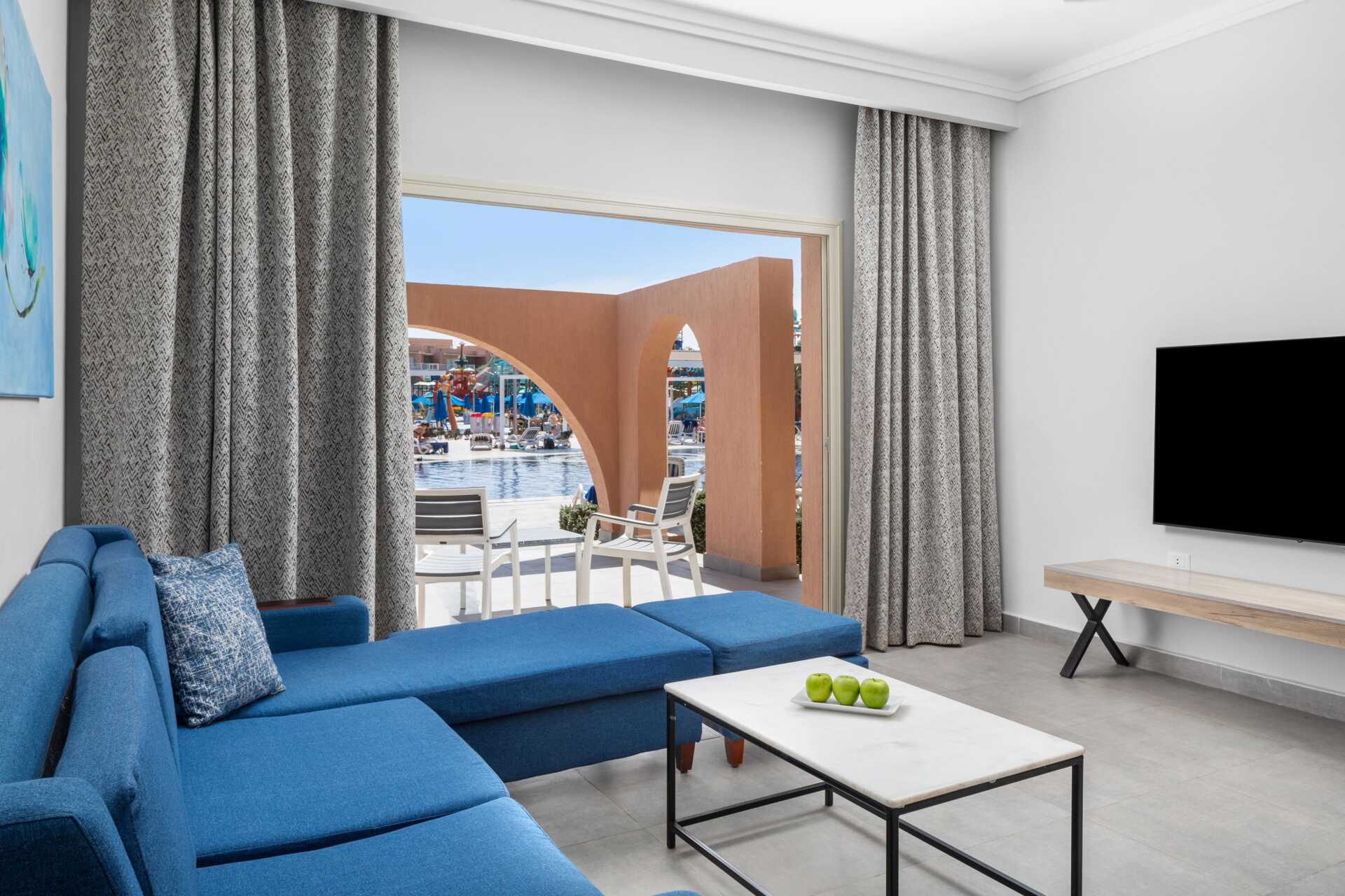2-værelses suite med balkon eller terrasse og pooludsigt. Suiten består af to soveværelser med hvert sit badeværelse i den delte hall, hvoraf det ene har et opholdsrum. En dobbeltseng i det ene soveværelse og det andet soveværelse har to enkeltsenge. Mulighed for ekstra opredning i en fold ud-seng. Gratis wifi, aircondition og deponering. Minibar mod betaling - daglig påfyldning af flaskevand. Tv med internationale kanaler. Hårtørrer. Badeværelse med badekar og seperat bruser samt toilet. Rengøring 7 gange om ugen.
