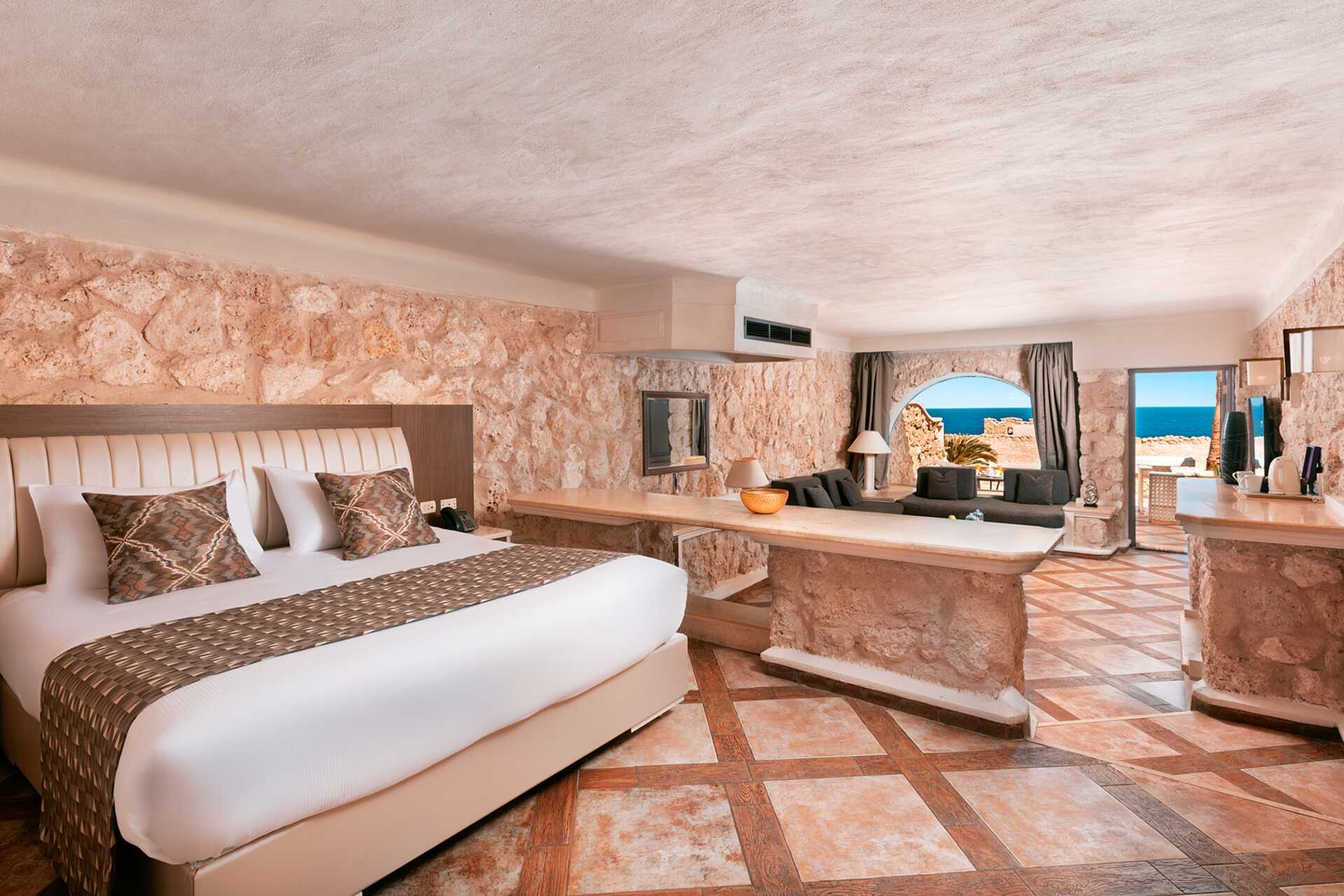 Superior-værelser med terrasse, delt pool og havudsigt. Terrassen har solstole, borde og stole. Værelserne ser lidt forskellige ud, alt efter hvilken bygning du bor i. En dobbeltseng eller to enkeltsenge. Mulighed for en ekstra opredning i en sovesofa. Gratis aircondition, wifi og deponering. Minibar mod betaling. El-kedel og kaffe/te. Hårtørrer. Badeværelse med bruser og toilet. Rengøring 7 gange om ugen. Du skal være 13 år eller ældre for at bo i denne værelsestype.