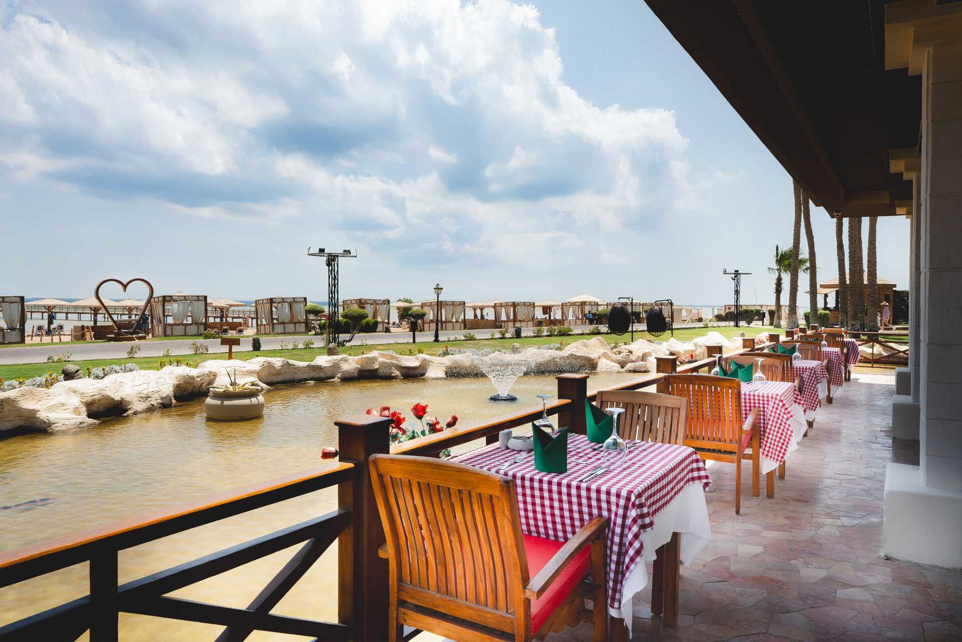 Under dit ophold er der flere restauranter og barer at vælge imellem. Buffetrestauranterne Palm og Waves serverer morgenmad, frokost og middag, og du finder også fire à la carte-restauranter, der serverer italiensk - Il Pomodoro, mexicansk - The Mexican Restaurant, indisk - Mumbai og tyrkisk - Dolma Bahe. De italienske og tyrkiske à la carte-restauranter ligger på stranden. Hver aften har Palm and the Wave et tema, såsom skaldyrsaften eller grillaften. Dresscode på restauranter ved middagstid (passende påklædt). Hotellet har også en orientalsk café med shisha og flere barer, såsom Mermaid Bar, en behagelig lounge hvor du kan nyde lækre drinks, og Sky & Chillout Bar, som har en betagende udsigt i en sofistikeret og afslappet atmosfære.