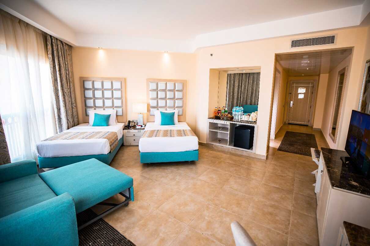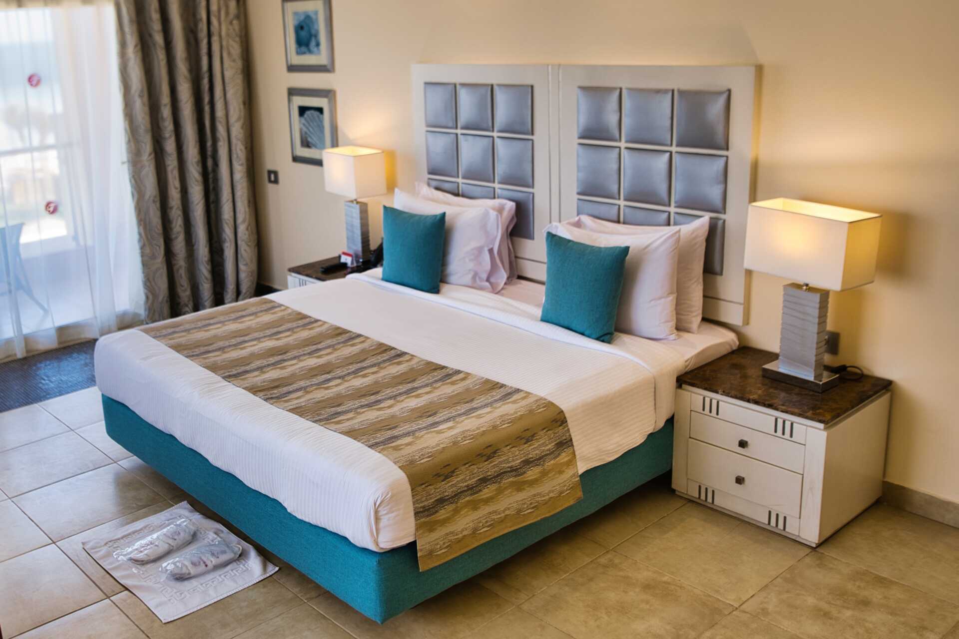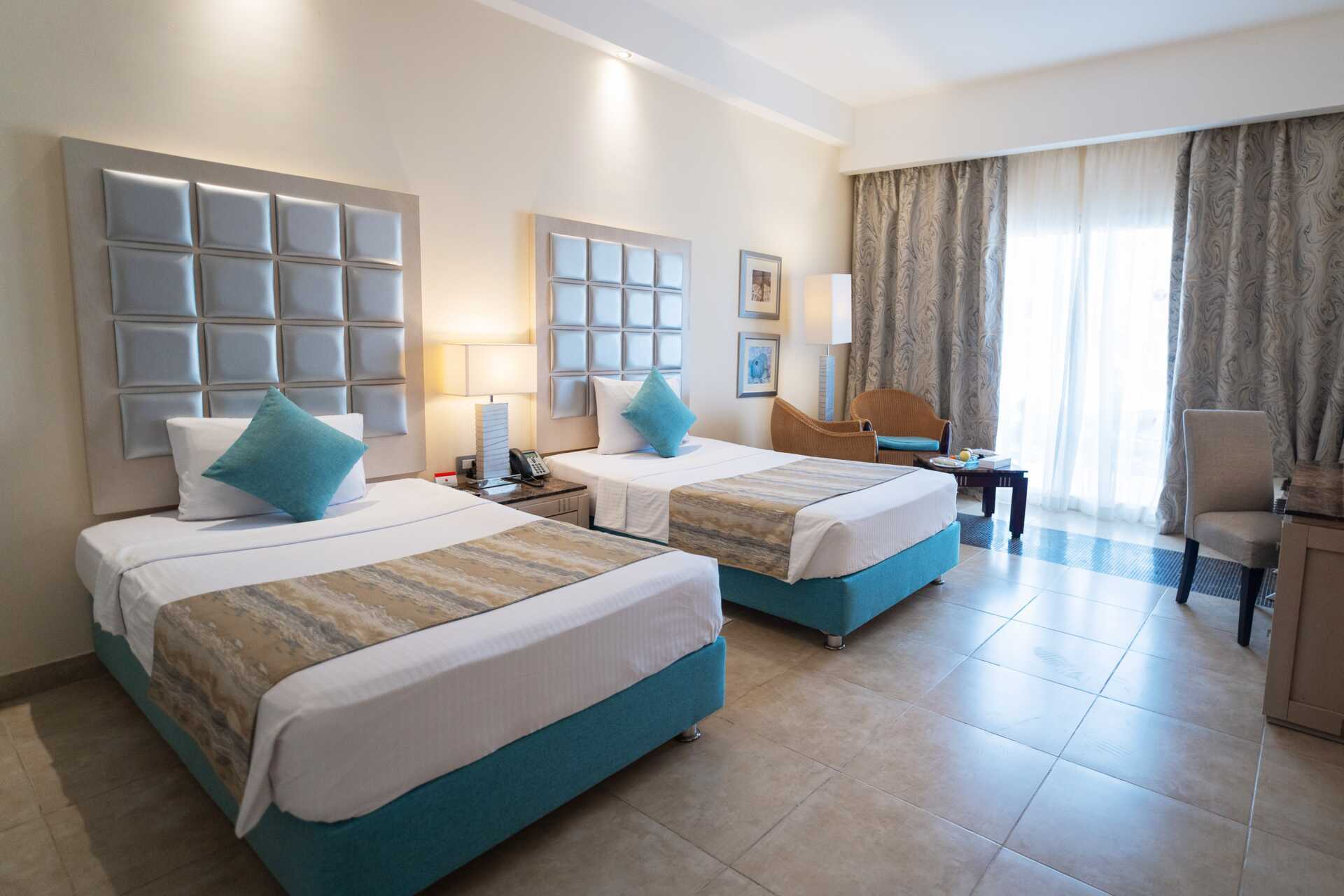 Club-værelse med balkon og havudsigt. En dobbeltseng eller to enkeltsenge. Mulighed for ekstra opredning i fold ud-seng. Gratis wifi, aircondition og deponering. El-kedel og kaffe/te. En stor flaske vand pr. personer/dag inkluderet. Tv med internationale kanaler. Badekåber og tøfler. Hårtørrer. Badeværelse med badekar, seperat bruser samt toilet. Rengøring 7 gange om ugen. Børn under to år tæller med i det maksimale antal personer på værelset.