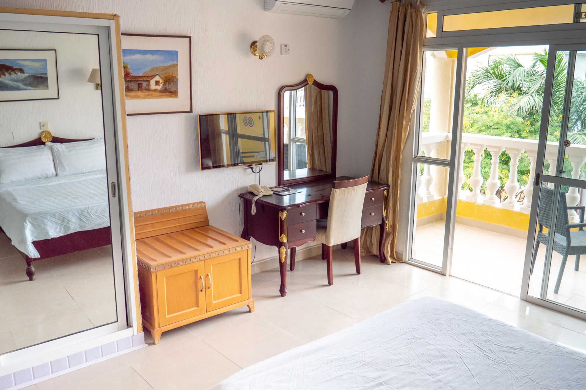 Dobbeltværelse med balkon eller terrasse. To enkeltsenge. Mulighed for ekstra opredning i fold ud-seng. Gratis wifi og deponering. Aircondition mod betaling. Loftsvifte. Køleskab. El-kedel. Tv med internationale kanaler. Strygejern og strygebræt. Hårtørrer. Badeværelse med badekar eller bruser samt toilet. Rengøring 7 gange om ugen. Der er myggenet ve.d hvert vindue.