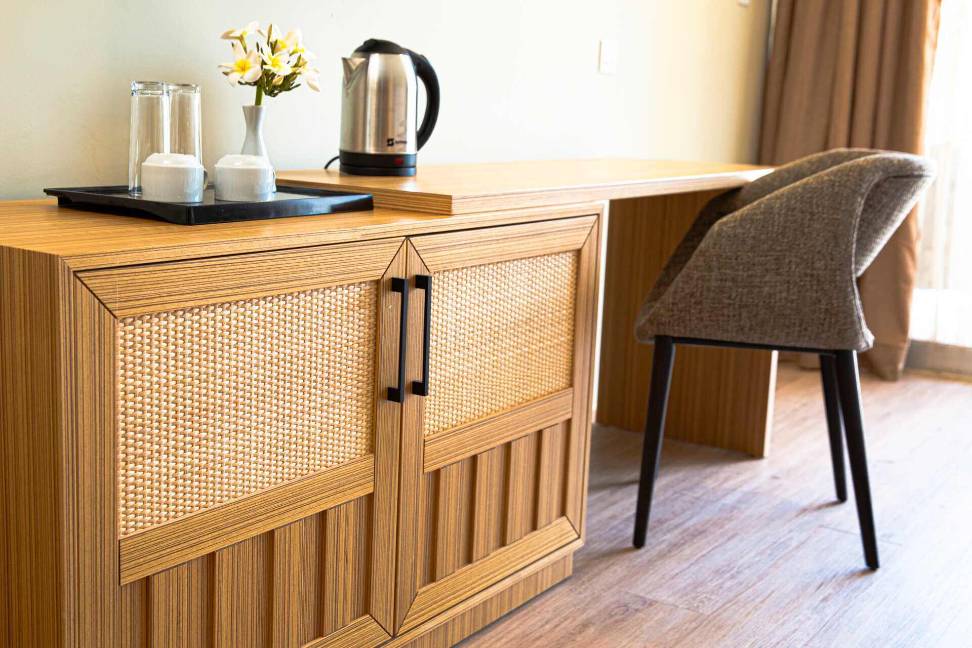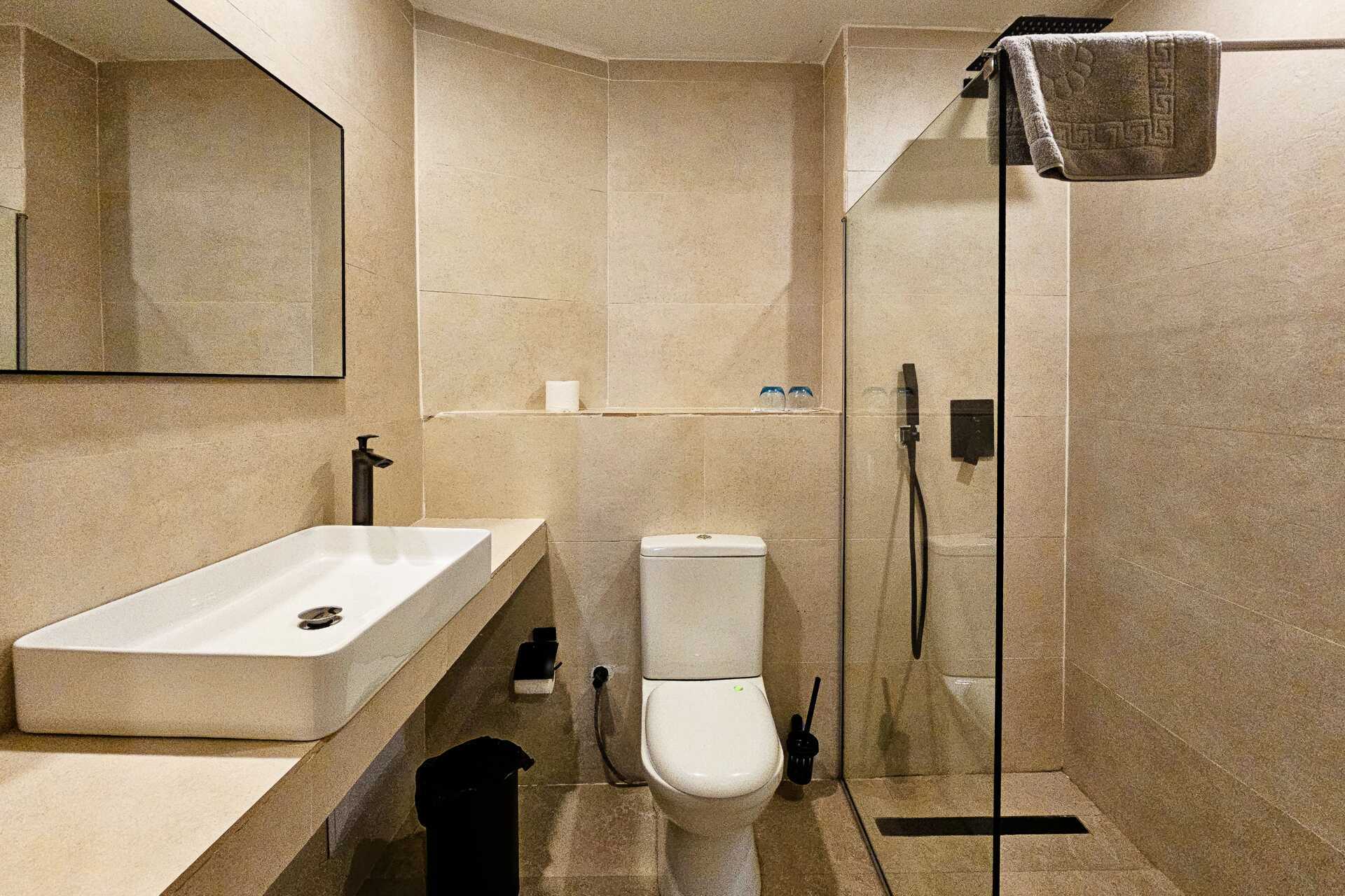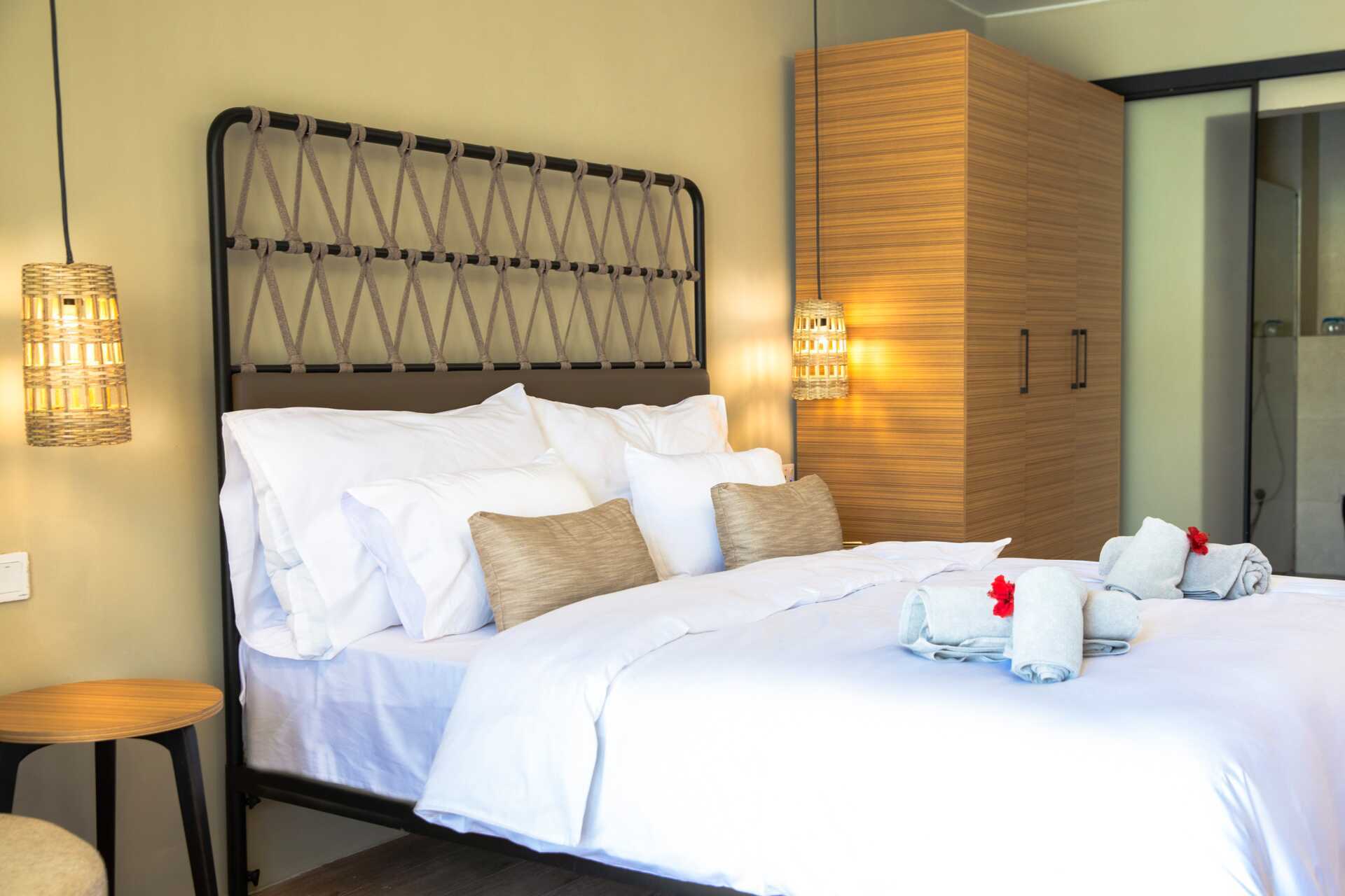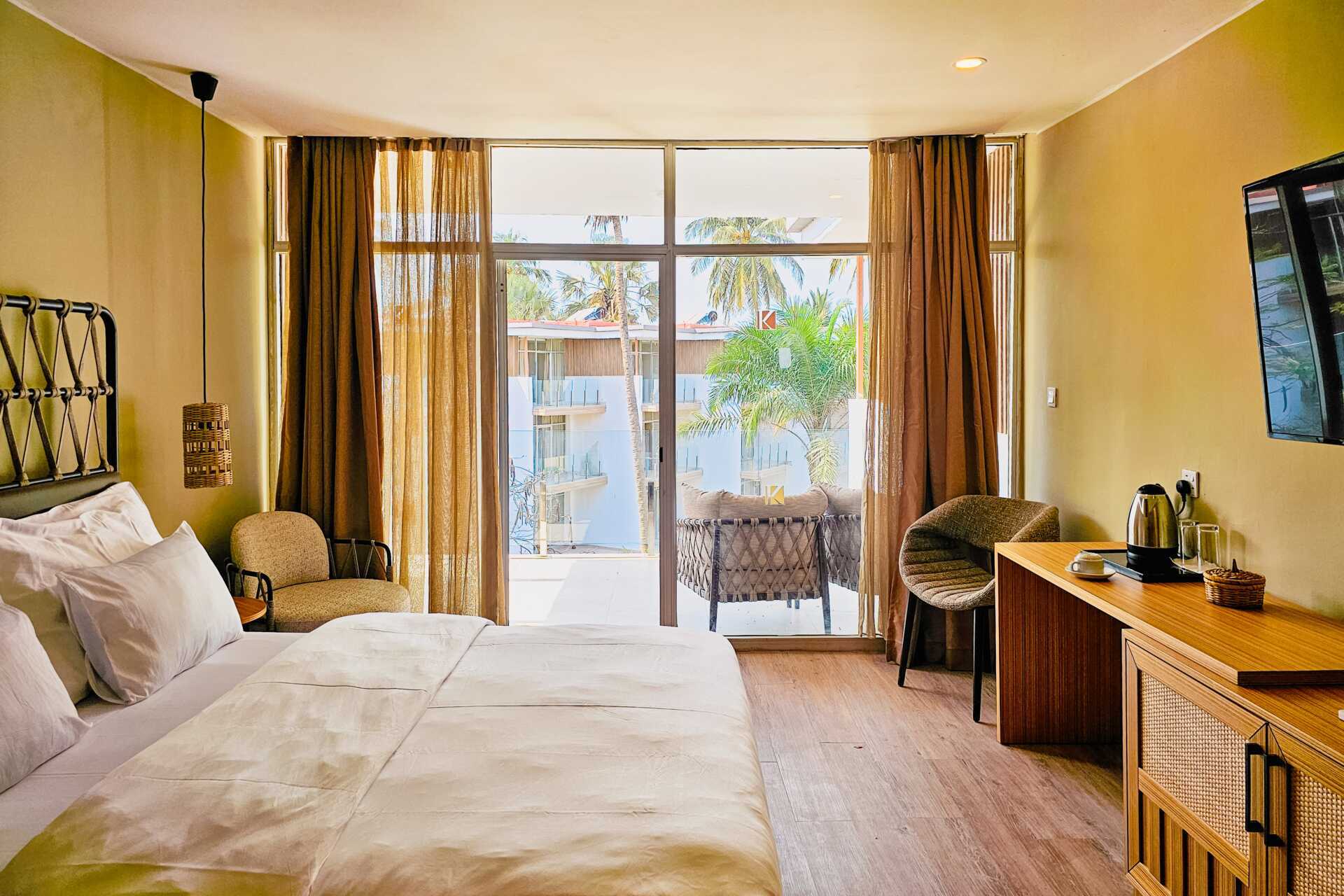 Suite med balkon og havudsigt. Suiten består af et soveværelse og et opholdsrum i åben planløsning. En dobbeltseng. Mulighed for ekstra opredning i fold ud-seng. Gratis wifi, aircondition og deponering. Køleskab. El-kedel og kaffe/te. Tv med internationale kanaler. Hårtørrer. Badeværelse med bruser og toilet. Rengøring 7 gange om ugen.