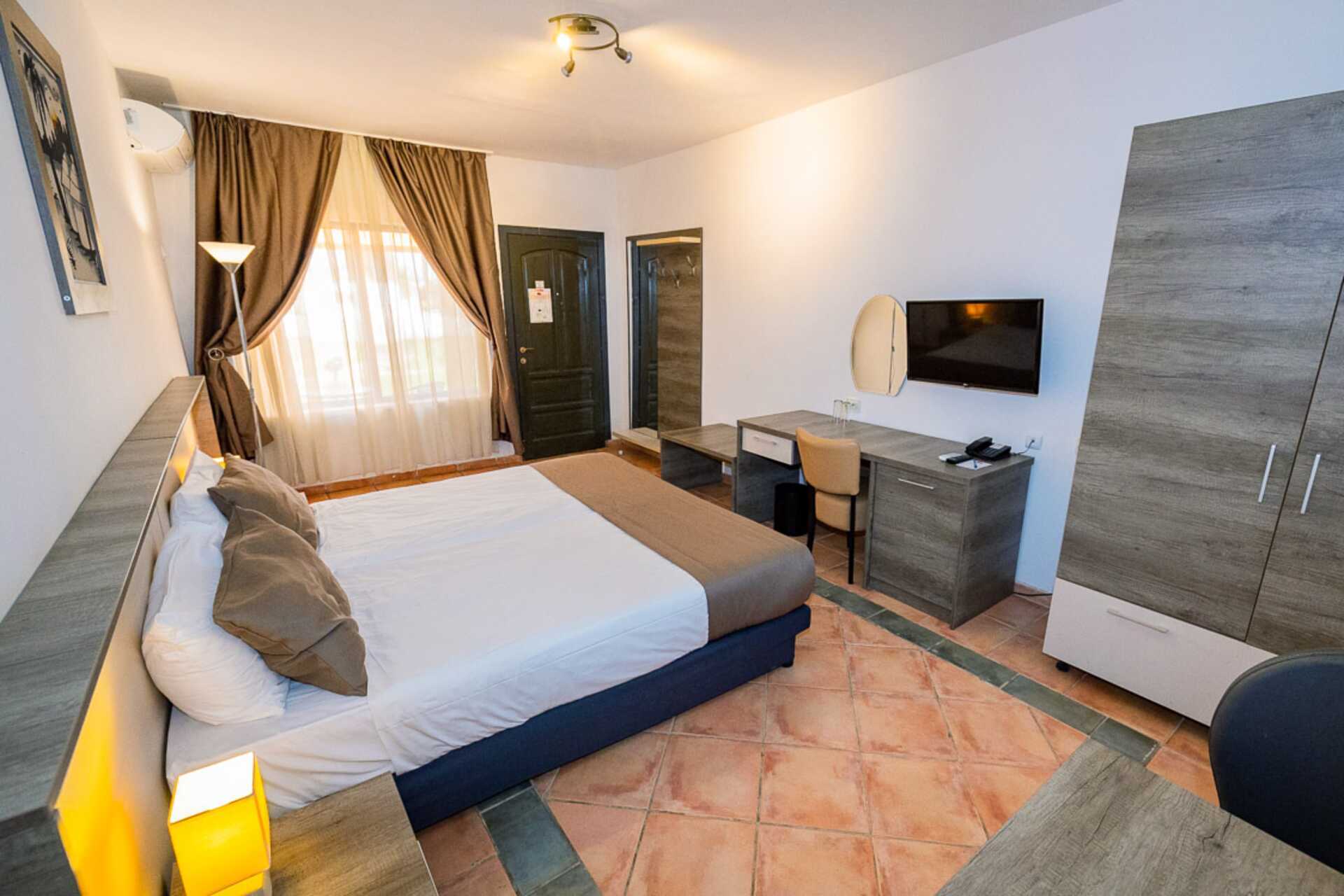 Dobbeltværelse med terasse, nogle med delvis havudsigt. Værelser med delvis havudsigt kan føles køligere, når de vender mod havet, og vinden er kølig. Andre værelser har udsigt over haven/poolområdet. En dobbeltseng eller to enkeltsenge. Mulighed for ekstra opredning i enkeltseng. Gratis wifi, aircondition og deponering. Køleskab. Tv med internationale kanaler. Hårtørrer. Badeværelse med bruser og toilet. Rengøring 7 gange om ugen.