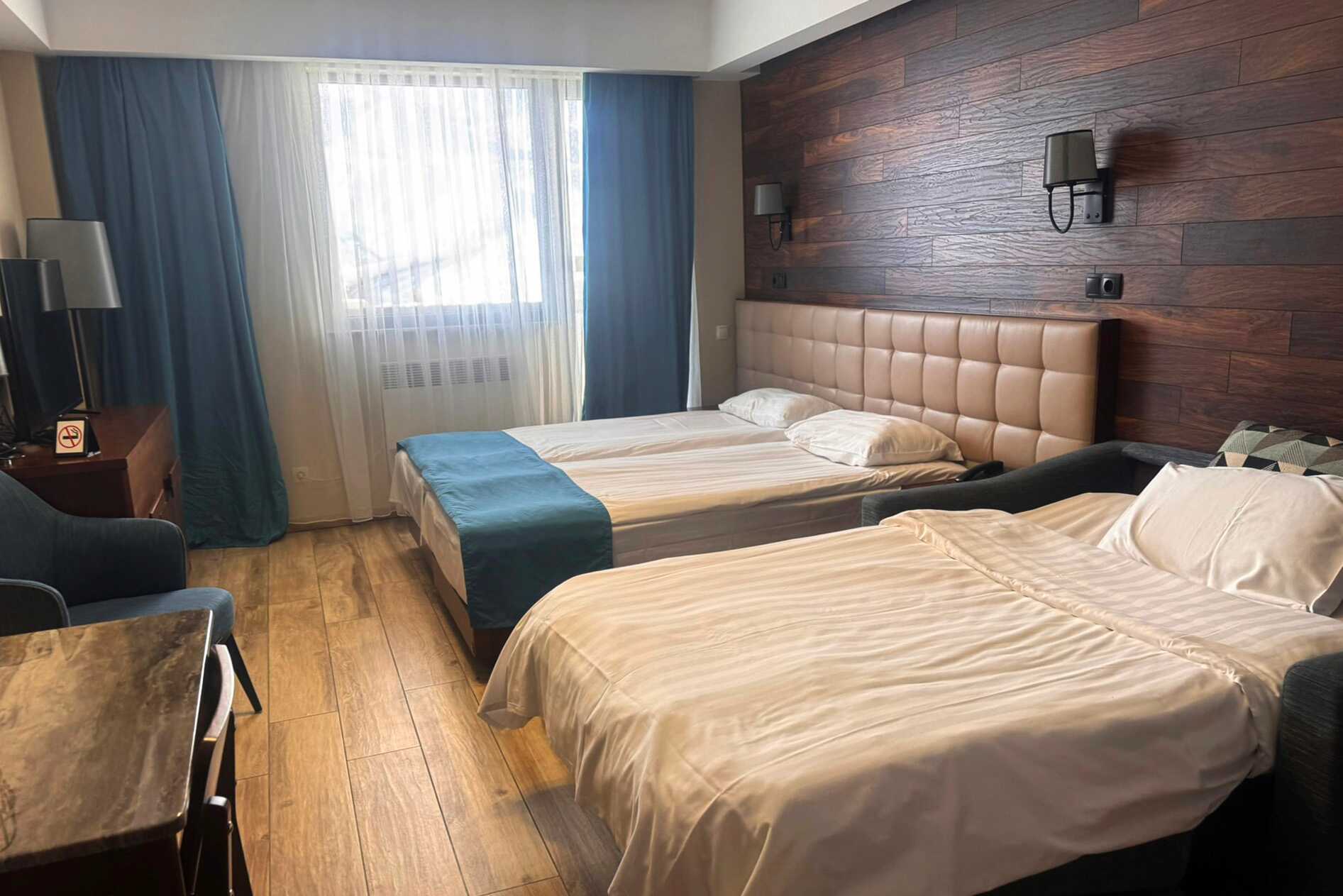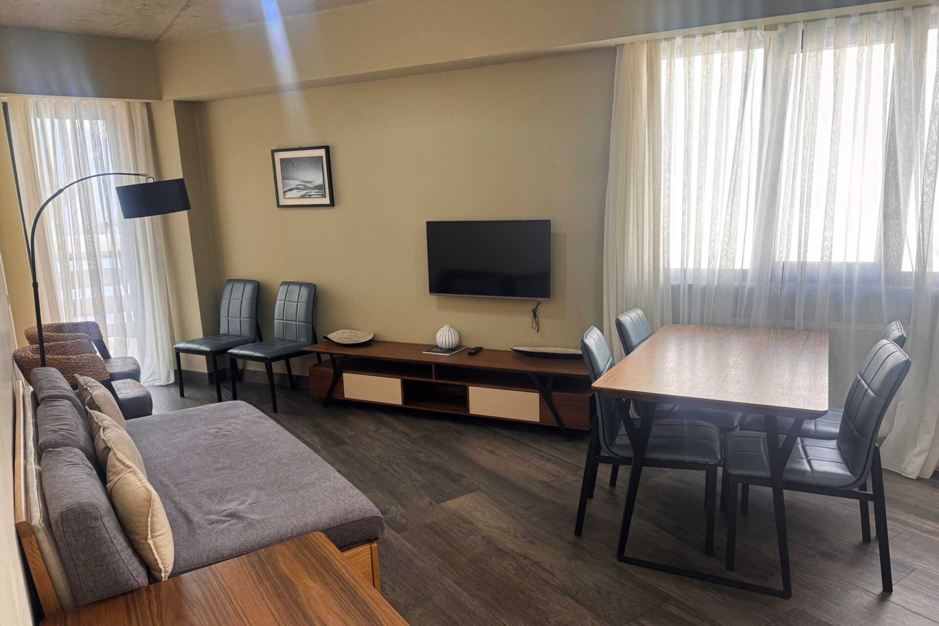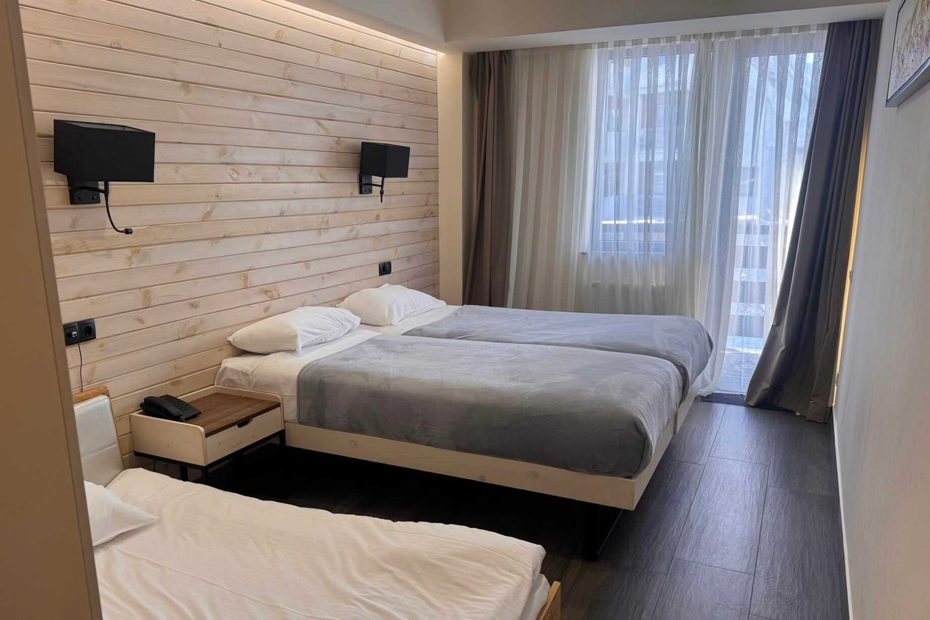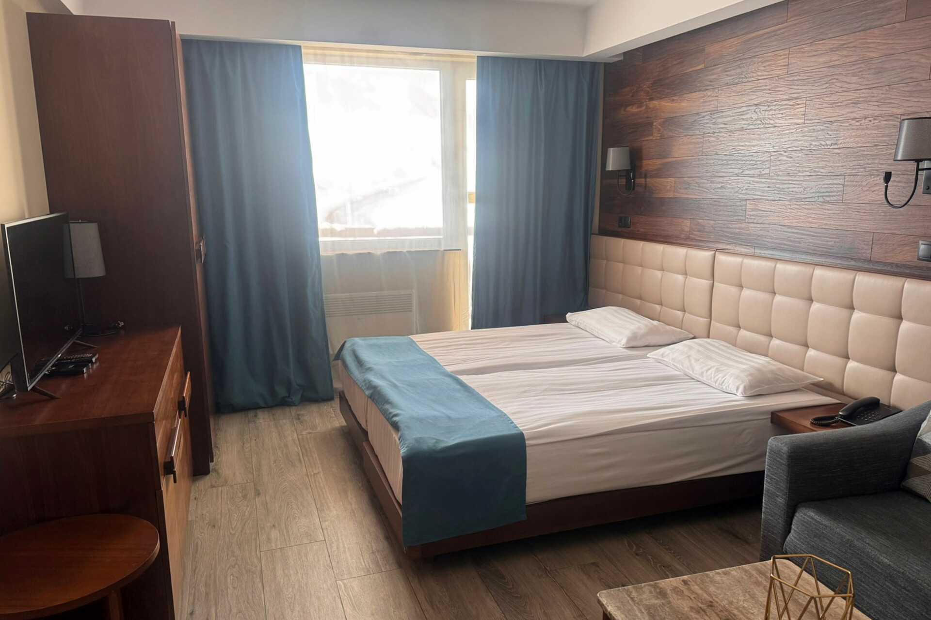 1-værelses lejligheder med balkon. Soveværelse med minikøkken. To enkeltsenge. Mulighed for ekstra opredning i sovesofa. Minikøkken med køleskab, fryser, kogeplader, el-kedel og enkelt køkkenudstyr. Gratis wifi, aircondition og deponering. Tv med internationale kanaler. Hårtørrer. Badeværelse med bruser og toilet. Rengøring 6 gange om ugen.