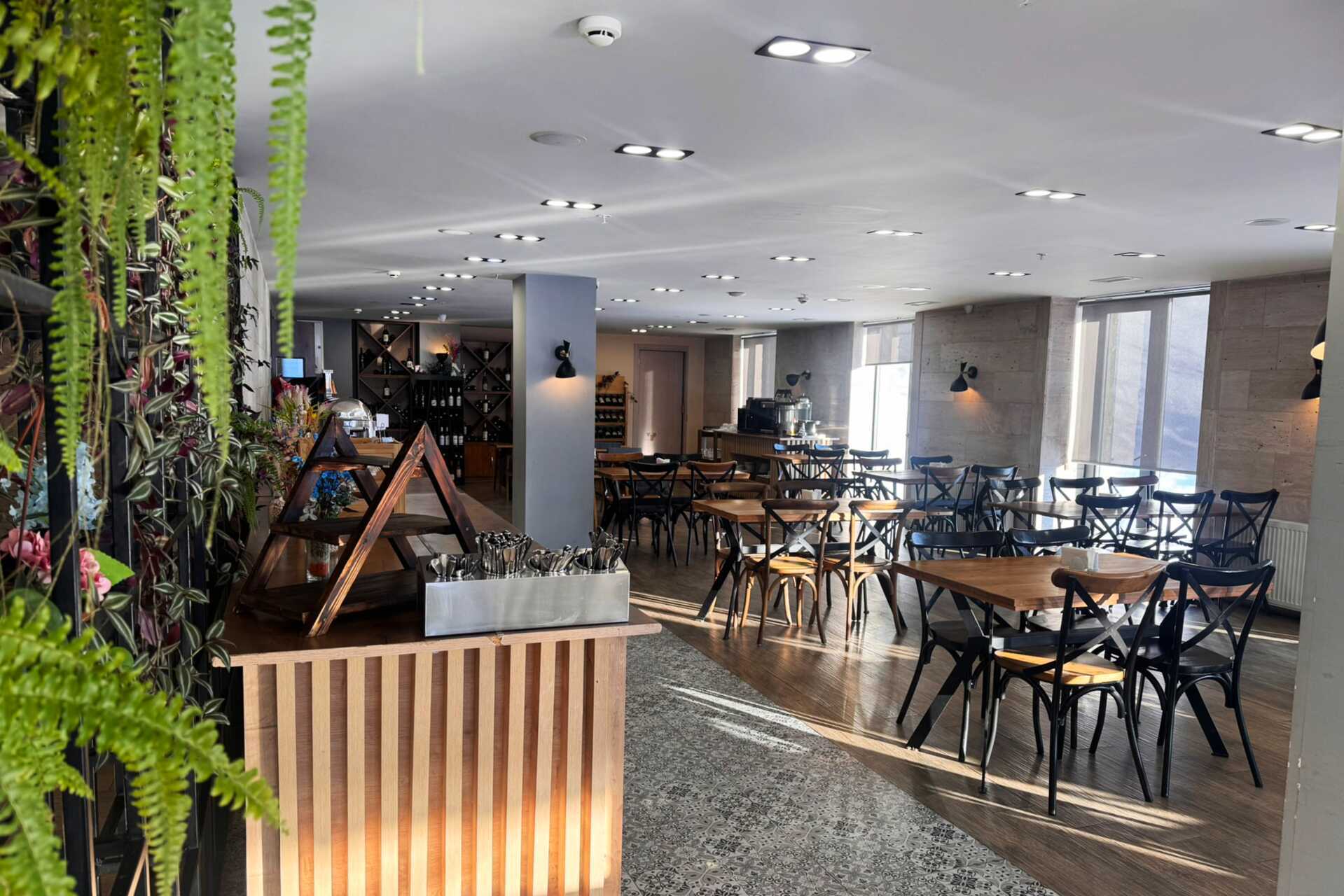 Трансфер на гору заявляют, что с 10 до 11 утра, с 15-ти минутным интервалом. Пришел на ресепшн в 9:50, чтобы не опоздать на первую отправку. Сижу в 10:30 ничего не происходит — пишу отзыв. Подъемники с 10 и надежда покататься на свежих трассах тает. Завтраки отличные. Хоть относительно однообразные и стандартные для шведского стола, но понравились. На завтрак 10 дней ходил с радостью. Ужин по меню ужасный. Такого пересушенного свиного шашлыка я еще в жизни не ел. С голодухи, я макал его в масло из-под картошки. Картошка была недожаренная. Никогда не думал, что в Грузии можно так поужинать. Больше сюда на ужин, не ходил. Сауна в нашем корпусе была только по документам. На стене висел файлик с бумажкой «Сауна». А сама сауна была на стадии стройки-ремонта. А сауна в другом корпусе платная. Минималка для гостей отеля - 30 лари (1350₽ на янв 2025). Отошение персонала хорошее. Были конечно те, кто строго смотрели, но в основном все добродушные и приветливые. Остались положительные впечатления.