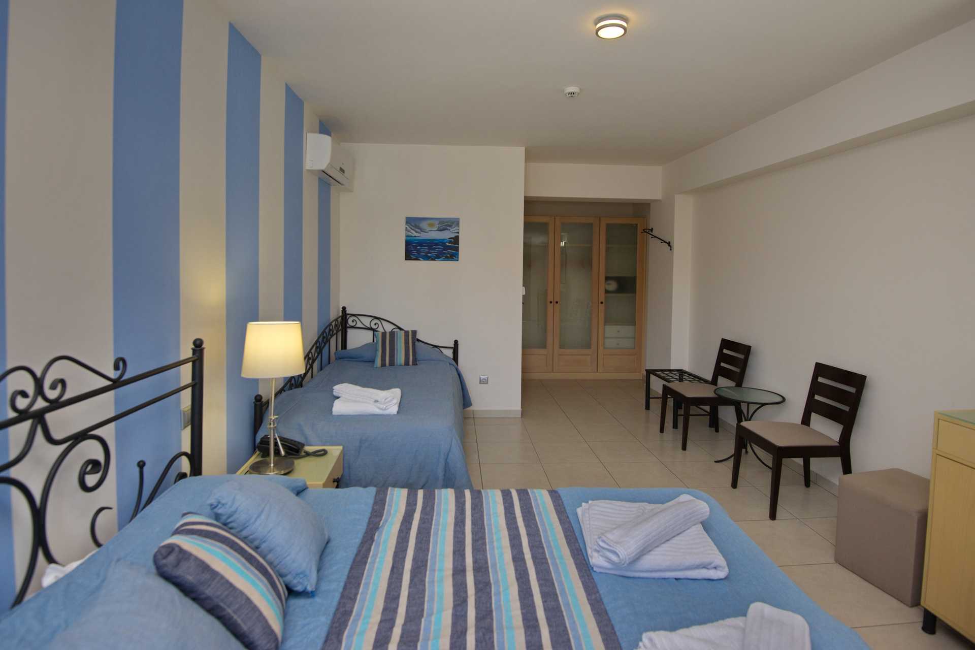 Dobbeltværelser med balkon eller terrasse. Dobbeltseng eller to enkeltsenge. Mulighed for ekstra opredning. Gratis wifi, aircondition og deponering. Køleskab. El-kedel. Tv med internationale kanaler. Hårtørrer. Badeværelse med badekar eller bruser samt toilet. Rengøring 7 gange om ugen.