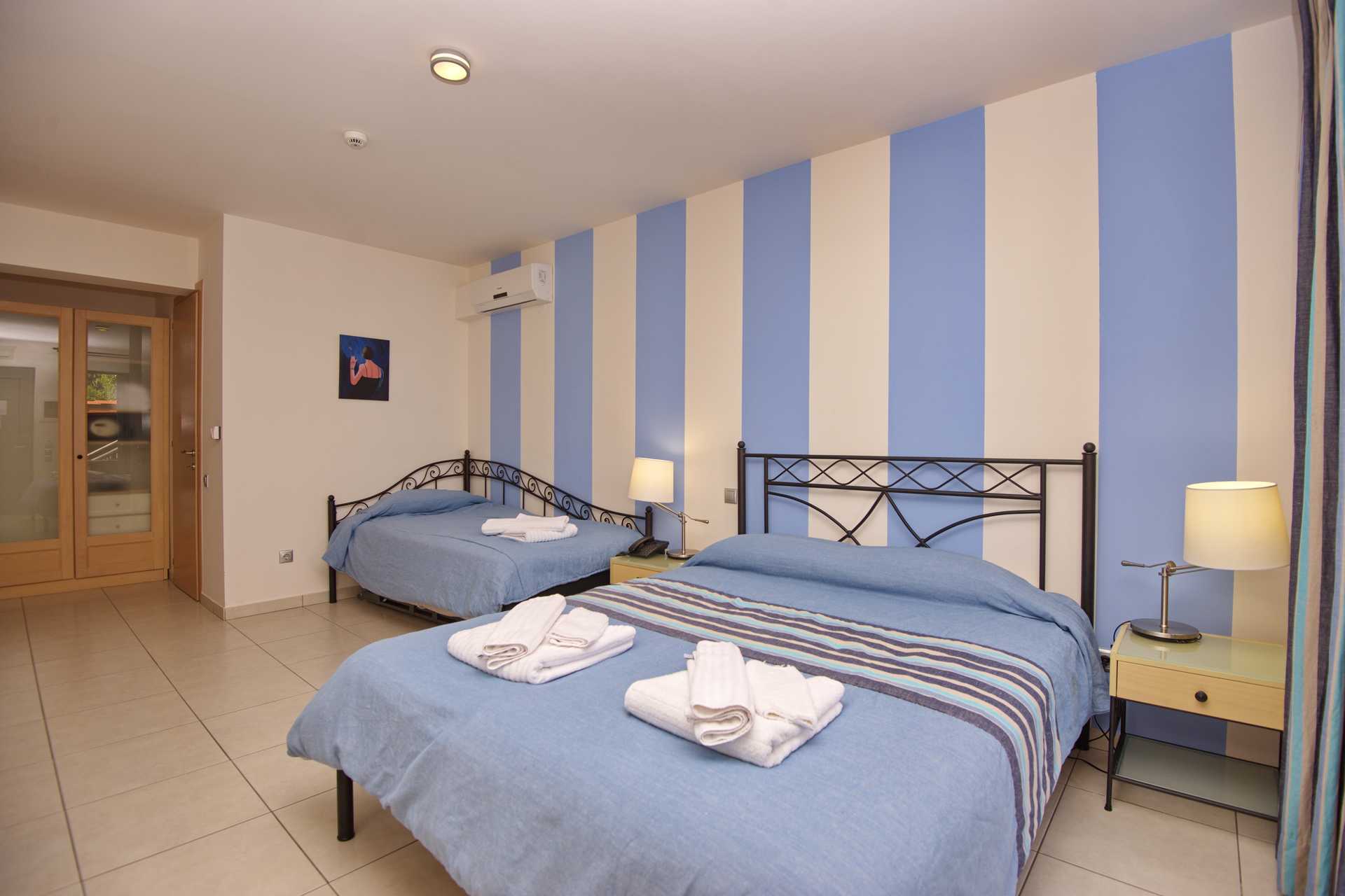 Dobbeltværelse med balkon eller terrasse. En dobbeltseng eller to enkeltsenge. Mulighed for ekstra opredning. Gratis wifi, aircondition og deponering. Køleskab. El-kedel. Tv med internationale kanaler. Hårtørrer. Badeværelse med badekar eller bruser samt toilet. Rengøring 7 gange om ugen.