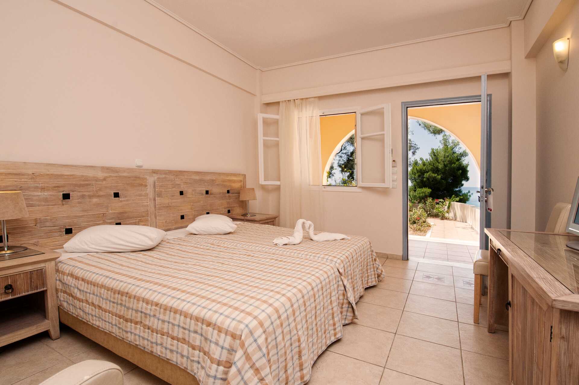 Dobbeltværelser i bungalow med balkon eller terrasse. En dobbeltseng eller to enkeltsenge. Gratis wifi, aircondition og deponering. Lille køleskab. Tv. Hårtørrer. Badeværelse med bruser eller badekar samt toilet.
