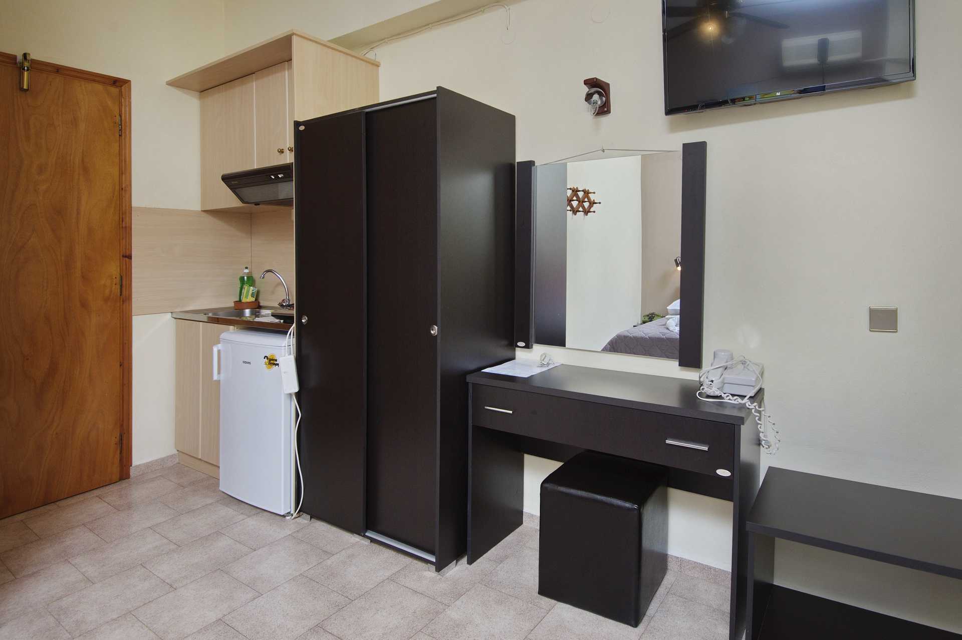 1-værelses lejligheder med balkon. Soveværelse kombineret med minikøkken. En dobbeltseng eller to enkeltsenge. Minikøkken med kogeplader, køleskab, el-kedel, brødrister og enkelt køkkenudstyr. Gratis wifi og aircondition og det samme er deponering, hvis du beder om det i receptionen. Tv med lokale kanaler. Hårtørrer. Badeværelse med bruser og toilet. Rengøring 7 gange om ugen. Børn under to år tæller med i det maksimale antal personer på værelset. Lyde udefra høres tydeligt i lejligheden.