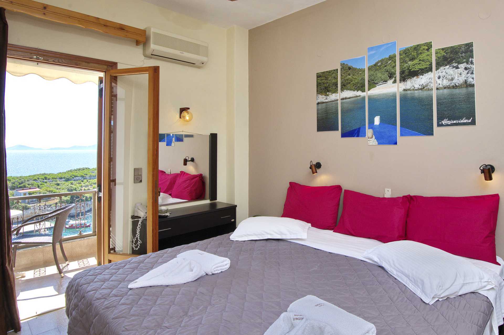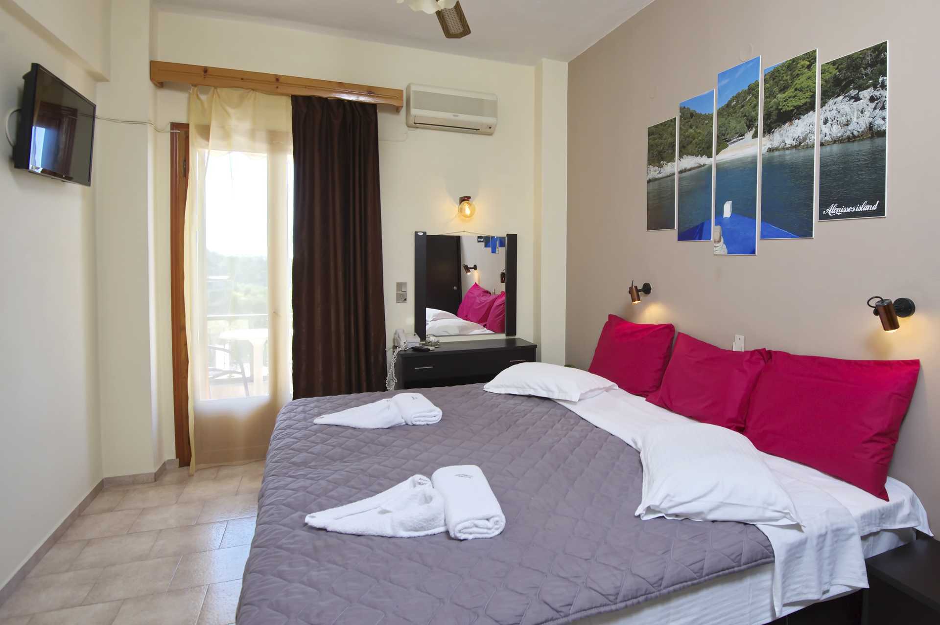 1-værelses lejlighed superior med balkon og havudsigt. Soveværelse kombineret med minikøkken. En dobbeltseng eller to enkeltsenge. Minikøkken med kogeplader, køleskab, el-kedel, brødrister og enkelt køkkenudstyr. Gratis wifi og aircondition, samt deponering, hvis du spørger om det på hotellet. Tv med lokale kanaler. Hårtørrer. Badeværelse med bruser og toilet. Rengøring 7 gange om ugen. Børn under to år tæller med i det maksimale antal personer på værelset. Lyde udefra høres tydeligt i lejligheden.