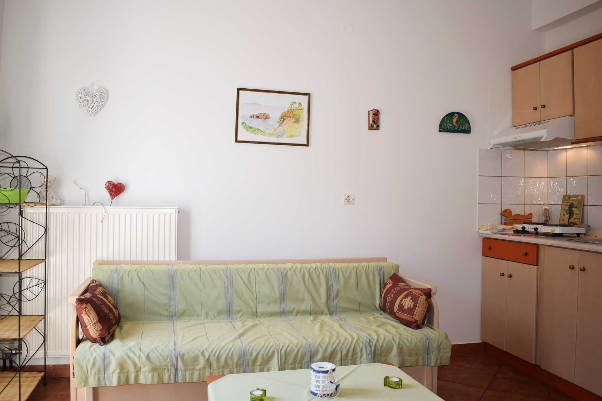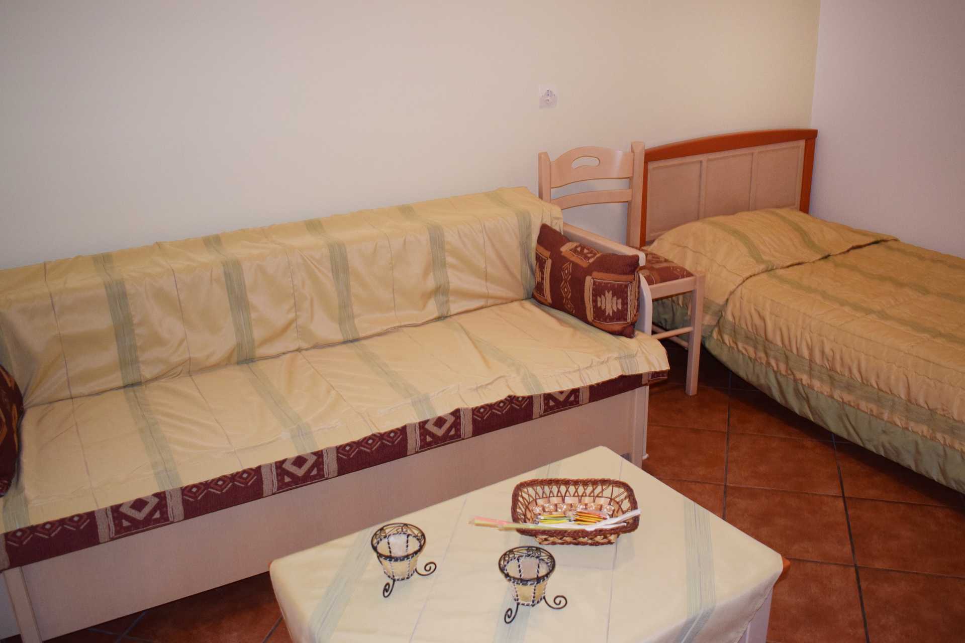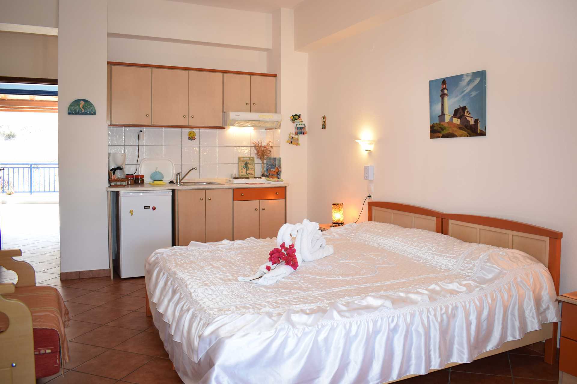 2-værelses lejlighed med balkon. Et soveværelse og et kombineret opholdsrum med minikøkken. En dobbeltseng eller to enkeltsenge. Mulighed for ekstra opredninger i sovesofa. Minikøkken med køleskab, kogeplader, brødrister, el-kedel, kaffemaskine og enkelt køkkenudstyr. Gratis wifi og aircondition. Tv med lokale kanaler. Hårtørrer. Badeværelse med bruser og toilet. Rengøring 6 gange om ugen.
