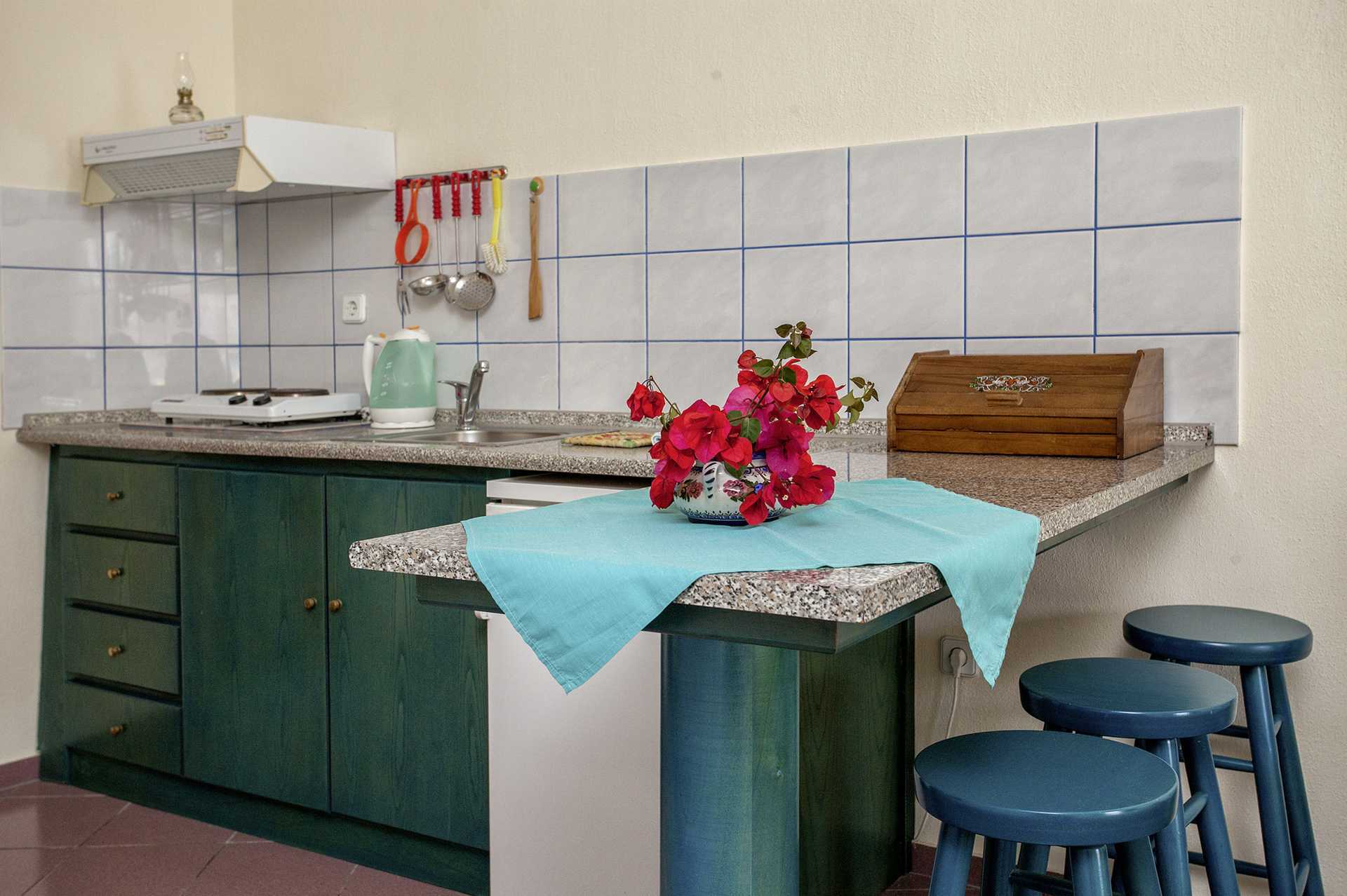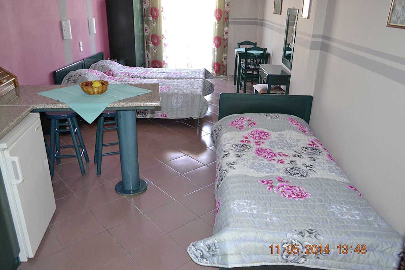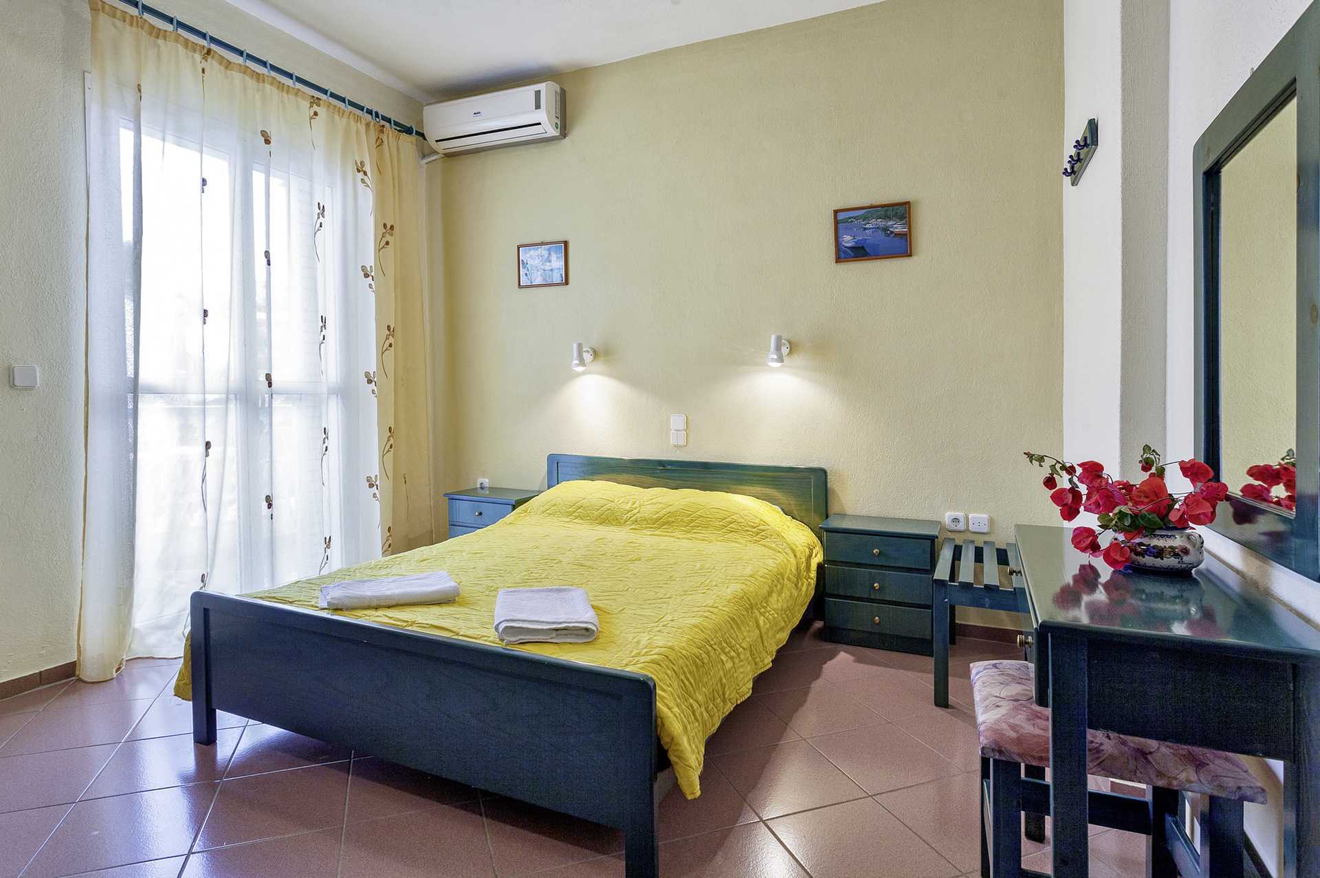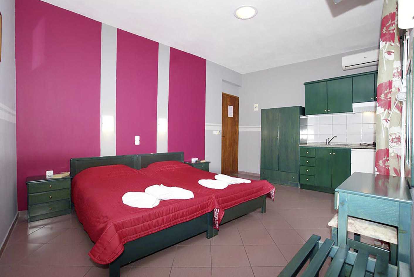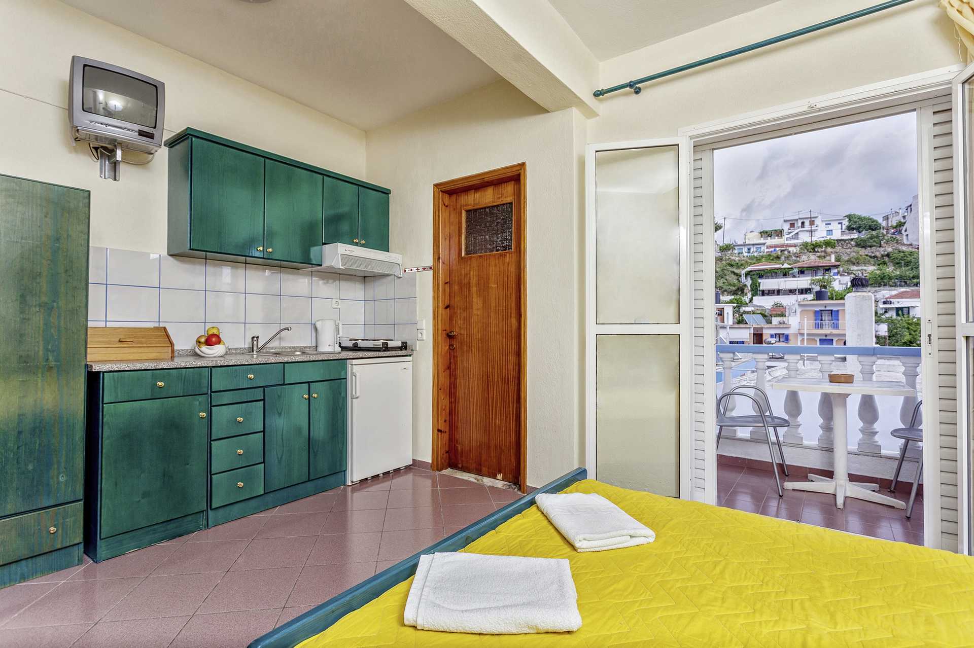 1-værelses lejlighed med balkon eller terrasse. Kombineret soveværelse med minikøkken. En dobbeltseng eller to enkeltsenge. Mulighed for ekstra opredning i enkeltseng. Minikøkken med kogeplader, køleskab, el-kedel og enkelt køkkenudstyr. Spiseplads, delvist udendørs. Gratis wifi, aircondition og deponering. Tv med lokale kanaler. Hårtørrer. Badeværelse med bruser og toilet. Rengøring 7 gange om ugen.