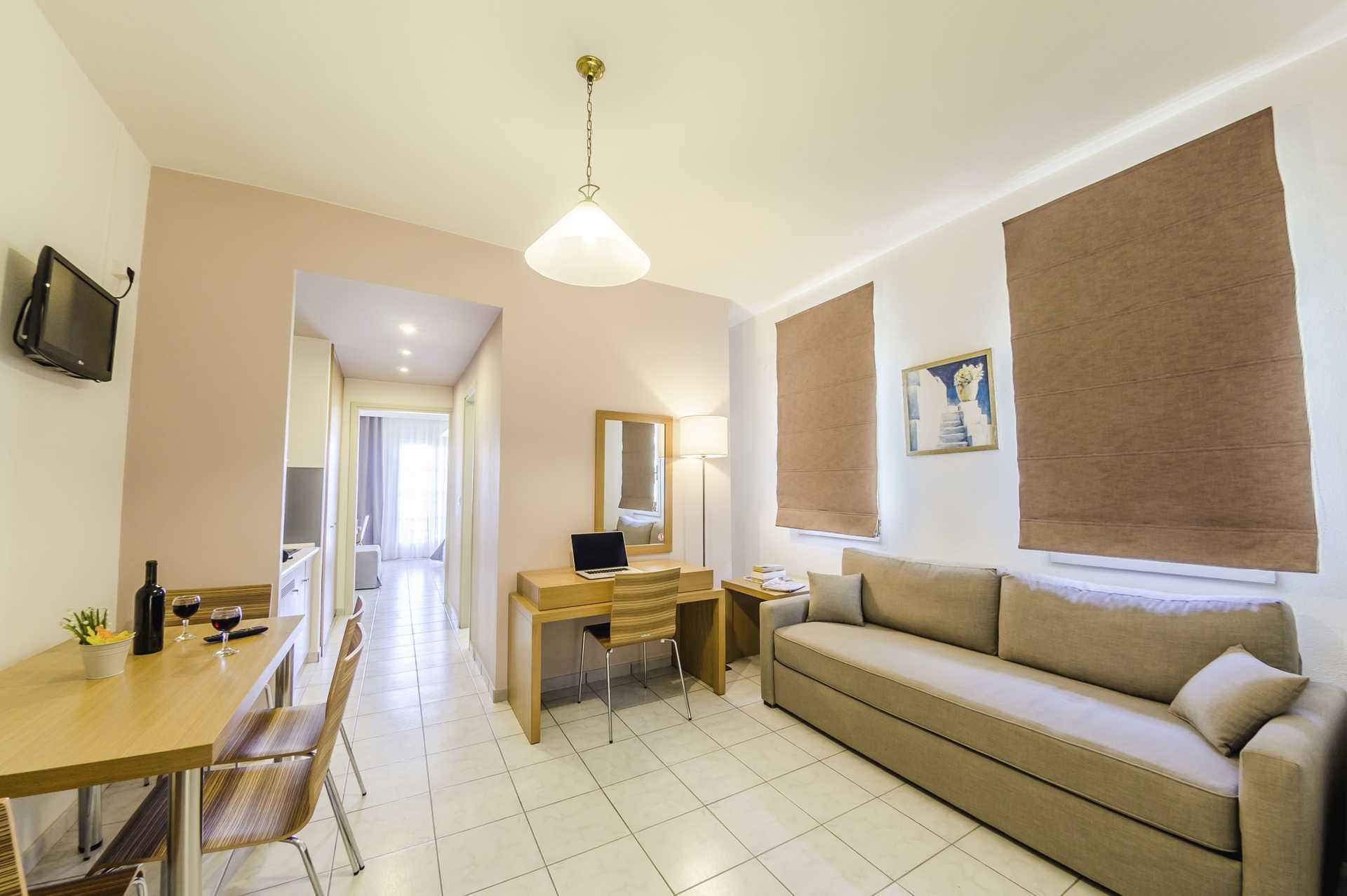 1-værelses lejligheder med balkon. Kombineret soveværelse og minikøkken. En dobbeltseng. Mulighed for ekstra opredning i lænestol. Minikøkken med køleskab, kogeplader, el-kedel og enkelt køkkenudstyr. Gratis wifi, deponering og aircondition. Tv med internationale kanaler. Hårtørrer. Badeværelse med bruser og toilet. Rengøring 7 gange om ugen.
