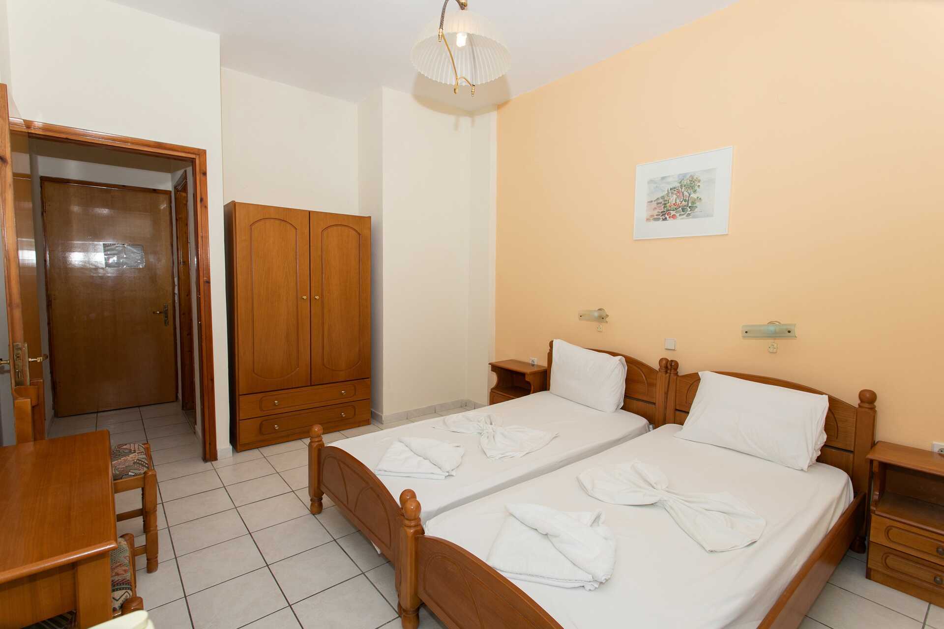 Dobbeltværelse med balkon. To enkeltsenge. Mulighed for ekstra opredning i enkeltseng. Aircondition mod betaling. Køleskab. Tv med internationale kanaler. Badeværelse med bruser og toilet. Rengøring 5 gange om ugen. Børn under to år tæller med i det maksimale antal personer på værelset.