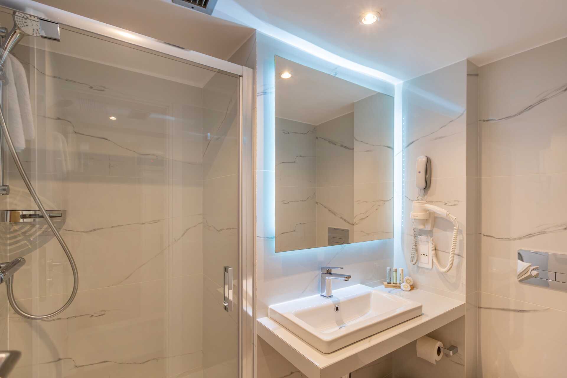 Dobbeltværelse med balkon. En dobbeltseng eller to enkeltsenge. Mulighed for ekstra opredning i fold ud-seng. Gratis wifi, aircondition og deponering. Minibar, øl og sodavand er tilgængelig ved ankomst, genopfyldning kan foretages mod betaling. El-kedel og kaffe/te. Nespresso kaffemaskine - kapsler indgår og genopfyldes hver dag. Tv med internationale kanaler. Lydisolerede vinduer. Badekåber. Hårtørrer. Badeværelse med bruser og toilet. Rengøring 6 gange om ugen.