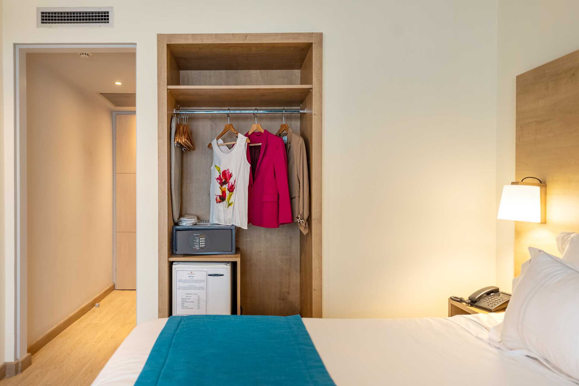 Superior-værelse uden terrasse. En dobbeltseng eller to enkeltsenge. Mulighed for ekstra seng i fold ud-seng. Gratis wifi, aircondition og deponering. Køleskab. Kedel samt kaffe og te. Tv med internationale kanaler. Lydisolerede vinduer. Strygejern og strygebræt. Hårtørrer. Badeværelse med badekar eller bruser og toilet. Rengøring 7 gange om ugen.