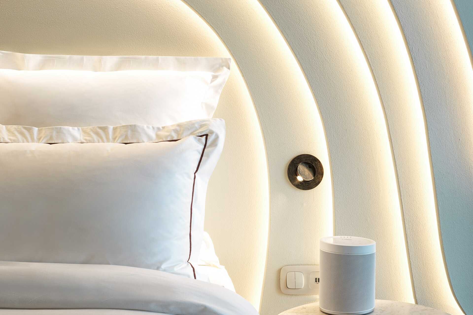 Dobbeltværelser med balkon, nogle med havudsigt. En dobbeltseng eller to enkeltsenge. Gratis wifi, aircondition og deponering. Tv. Espressomaskine. Badeværelse med badekar/bruser og toilet. Rengøring 6 gange om ugen.