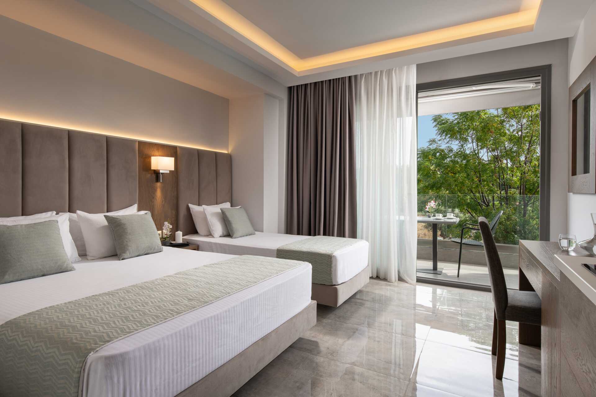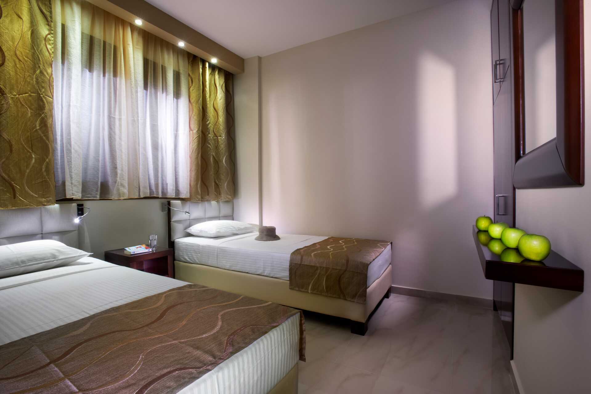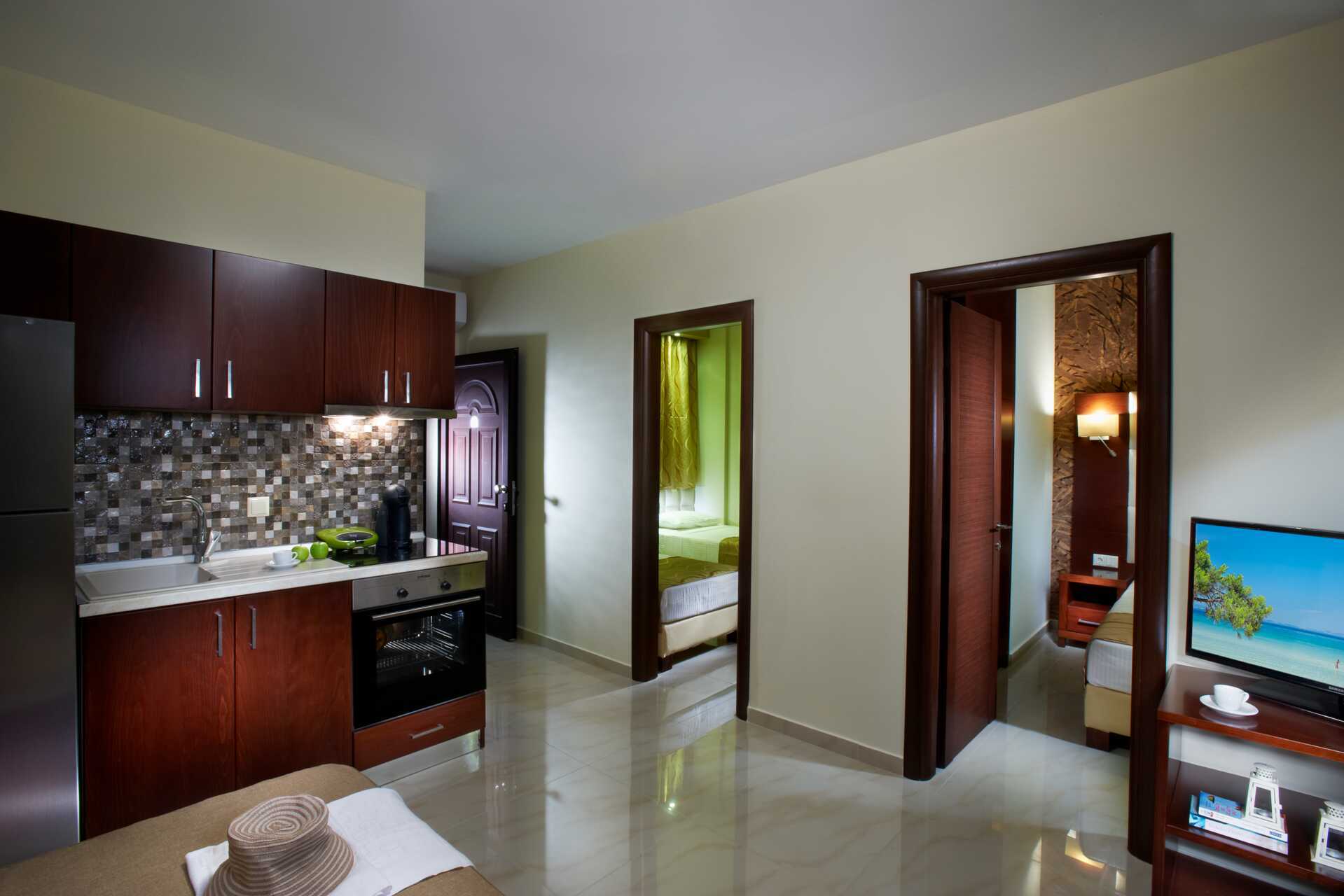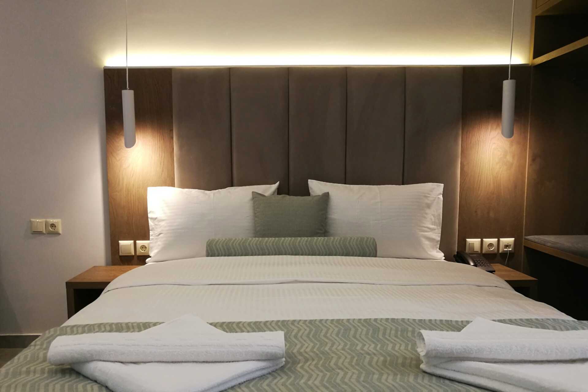 1-værelses lejlighed superior med balkon eller terrasse. Kombineret soveværelse og minikøkken. En dobbeltseng og mulighed for ekstra opredning i sovesofa. En skydedør af glas mellem sengen og sovesofaen. Minikøkken med køleskab, kogeplader, mikrobølgeovn og enkelt køkkenudstyr. Gratis wifi, aircondition og deponering. Tøfler. Hårtørrer. Badeværelse med bruser og toilet. Rengøring 7 gange om ugen.