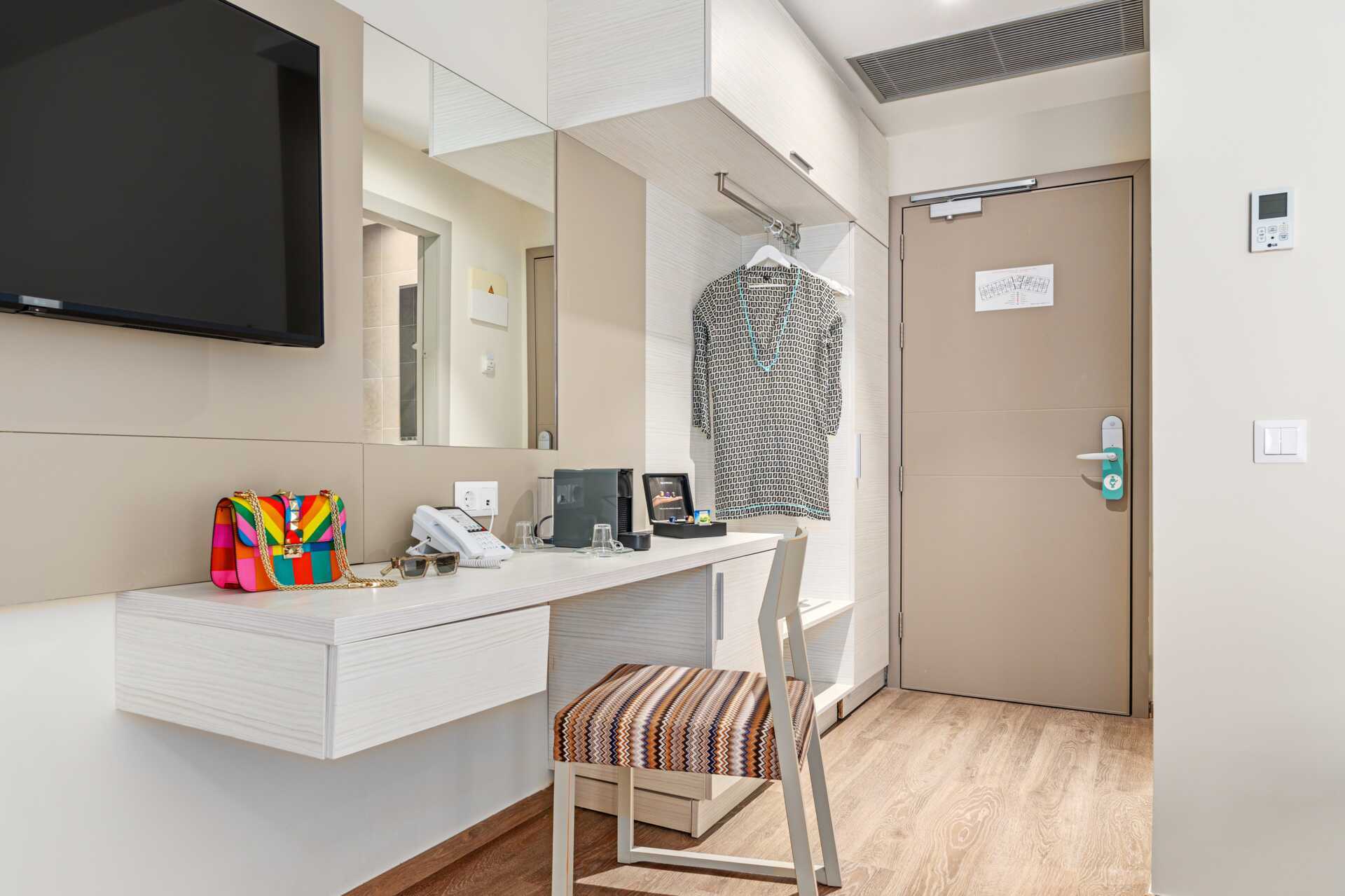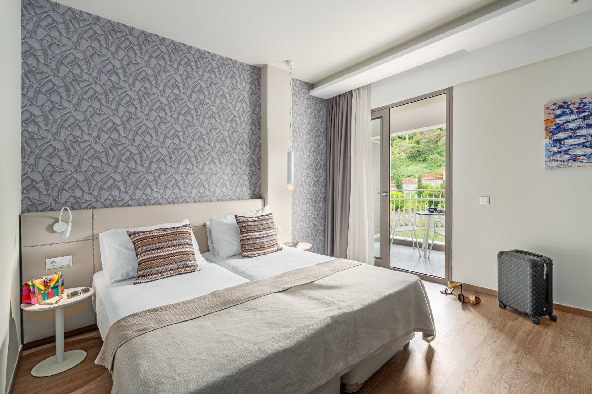 Deluxe-værelser med balkon, nogle med havudsigt. En dobbeltseng eller to enkeltsenge. Mulighed for ekstra opredning i sovesofa. Pudemenu. Gratis wifi, aircondition og deponering. Køleskab. El-kedel og kaffe/te. Nespresso-maskine - kapsler inkluderet ved ankomst, genopfyldning mod betaling. Tv med internationale kanaler. Tøfler. Hårtørrer. Badeværelse med bruser og toilet. Rengøring 7 gange om ugen.
