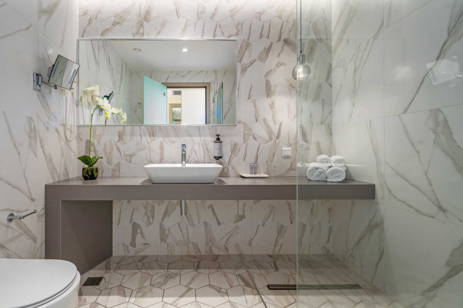 Penthouse Suite med balkon og havudsigt. Suiterne ligger på hotellets øverste etage og består af to soveværelser. Balinesiske senge på stranden er inkluderet. En dobbeltseng eller to enkeltsenge i hvert soveværelse. Pudemenu. Gratis wifi, aircondition og deponering. Køleskab. Fyldt minibar ved ankomst - opfyldning mod betaling El-kedel og kaffe/te. Nespresso-maskine - kapsler inkluderet ved ankomst, genopfyldning mod betaling. Tv med internationale kanaler. Badekåber og tøfler. Hårtørrer. To badeværelser med bruser og toilet. Rengøring 7 gange om ugen.