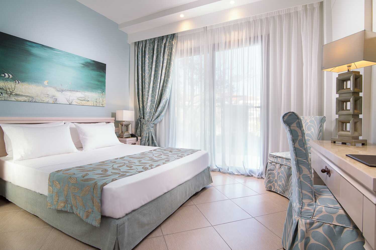 Velkommen til Flegra Palace, et sted for fred og afslapning! Charmerende små bygninger venter dig her, omgivet af et indbydende poolområde med en varm og imødekommende atmosfære. Sæt dig på den unikke glasplatform ved poolbaren og nyd en perfekt blandet cocktail i skyggen – det ultimative sted at lade feriefølelsen tage over. Og når du længes efter havet, er der kun en kort gåtur til den smukke, lange strand, hvor Middelhavets glitrende bølger møder horisonten.