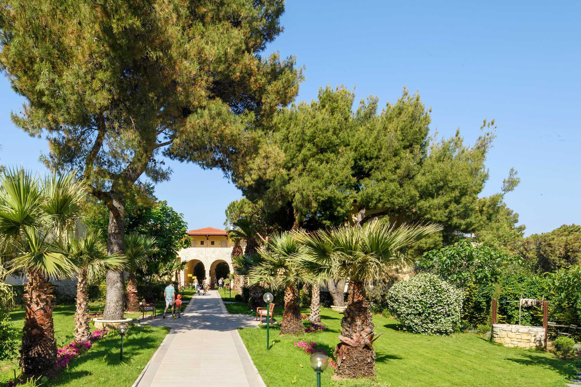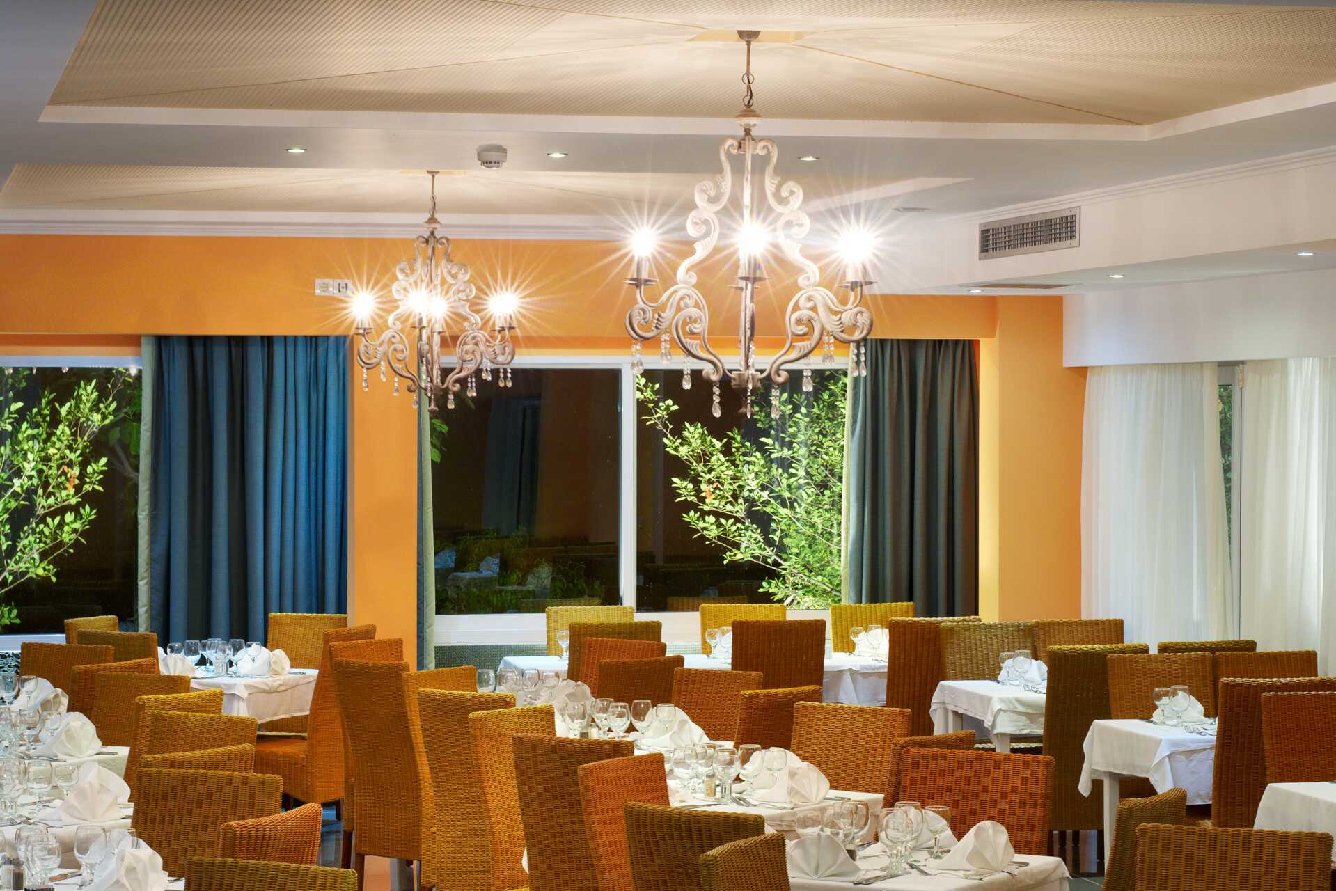 Der er en buffetrestaurant, der serverer morgenmad og middag, samt en græsk taverna på stranden.