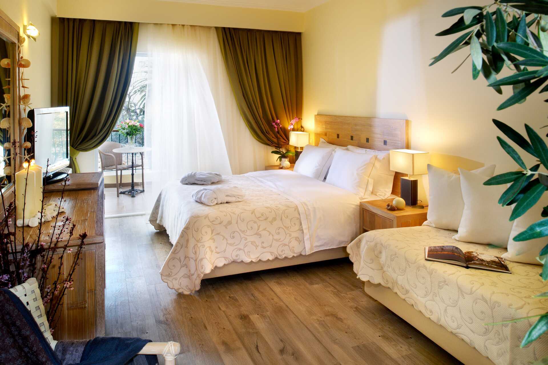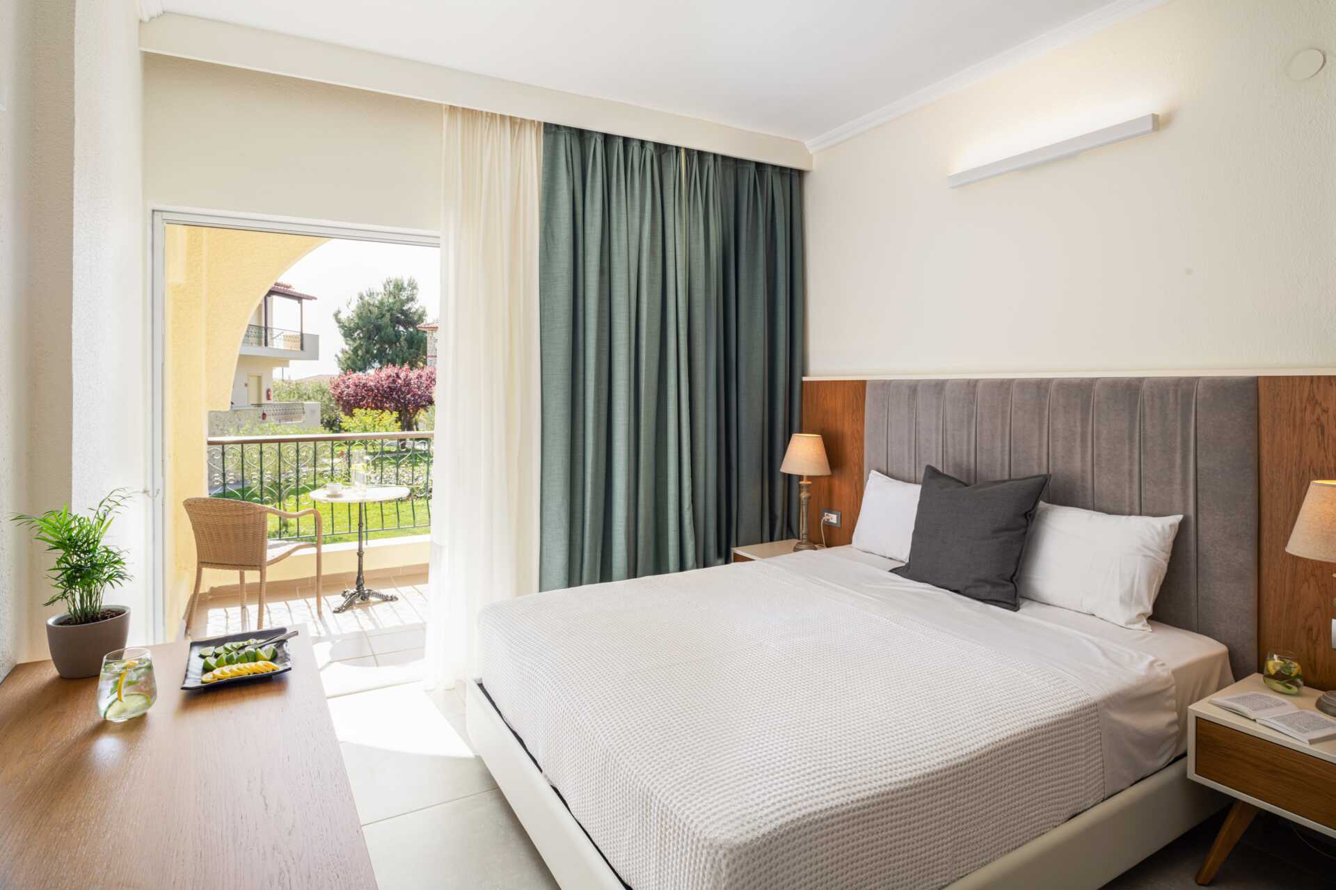 Dobbeltværelser med balkon eller terrasse. En dobbeltseng eller to enkeltsenge. Mulighed for ekstra opredninger i sovesofa. Gratis wifi og aircondition. Deponering mod betaling. Lille køleskab. El-kedel kan lånes. Tv med internationale kanaler. Hårtørrer. Badeværelse med badekar eller bruser samt toilet. Rengøring 7 gange om ugen.