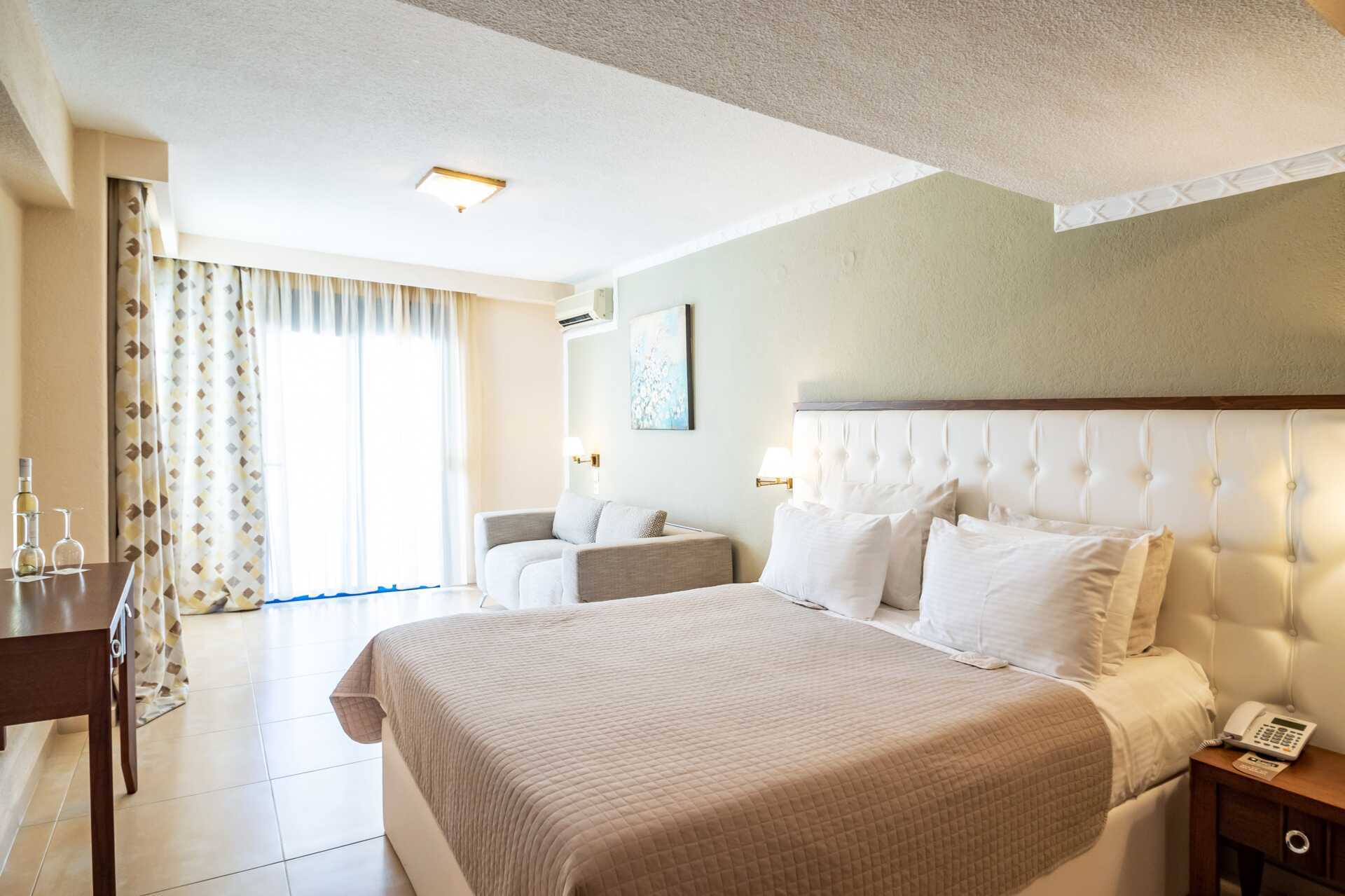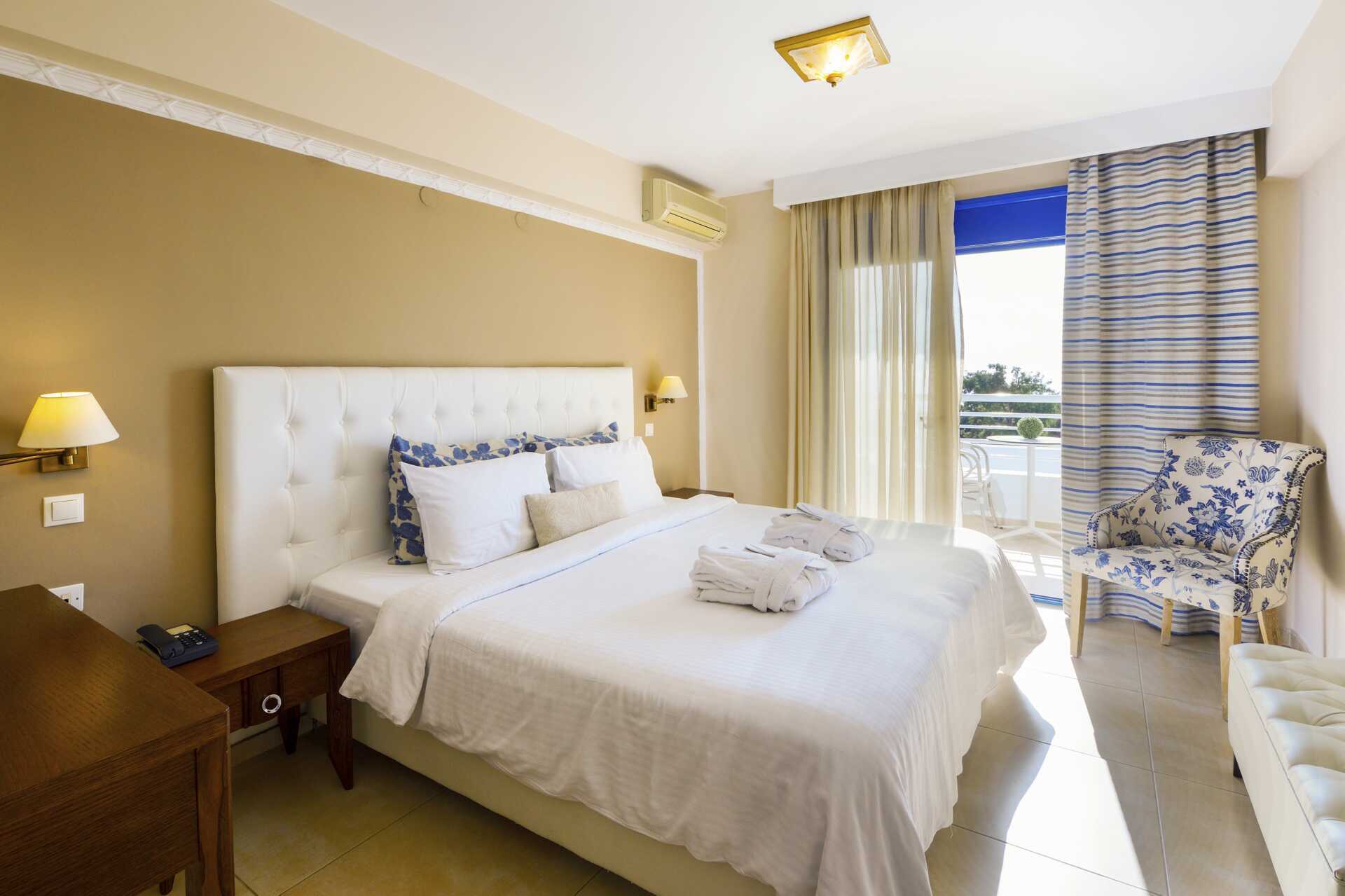 Executive-værelse med balkon og havudsigt. En dobbeltseng eller to enkeltsenge. Gratis wifi, aircondition og deponering. Minibar. El-kedel og kaffe/te. Espresso kaffemaskine. Tv med internationale kanaler. Badekåber og tøfler. Hårtørrer. Badeværelse med bruser og toilet. Rengøring 6 gange om ugen.