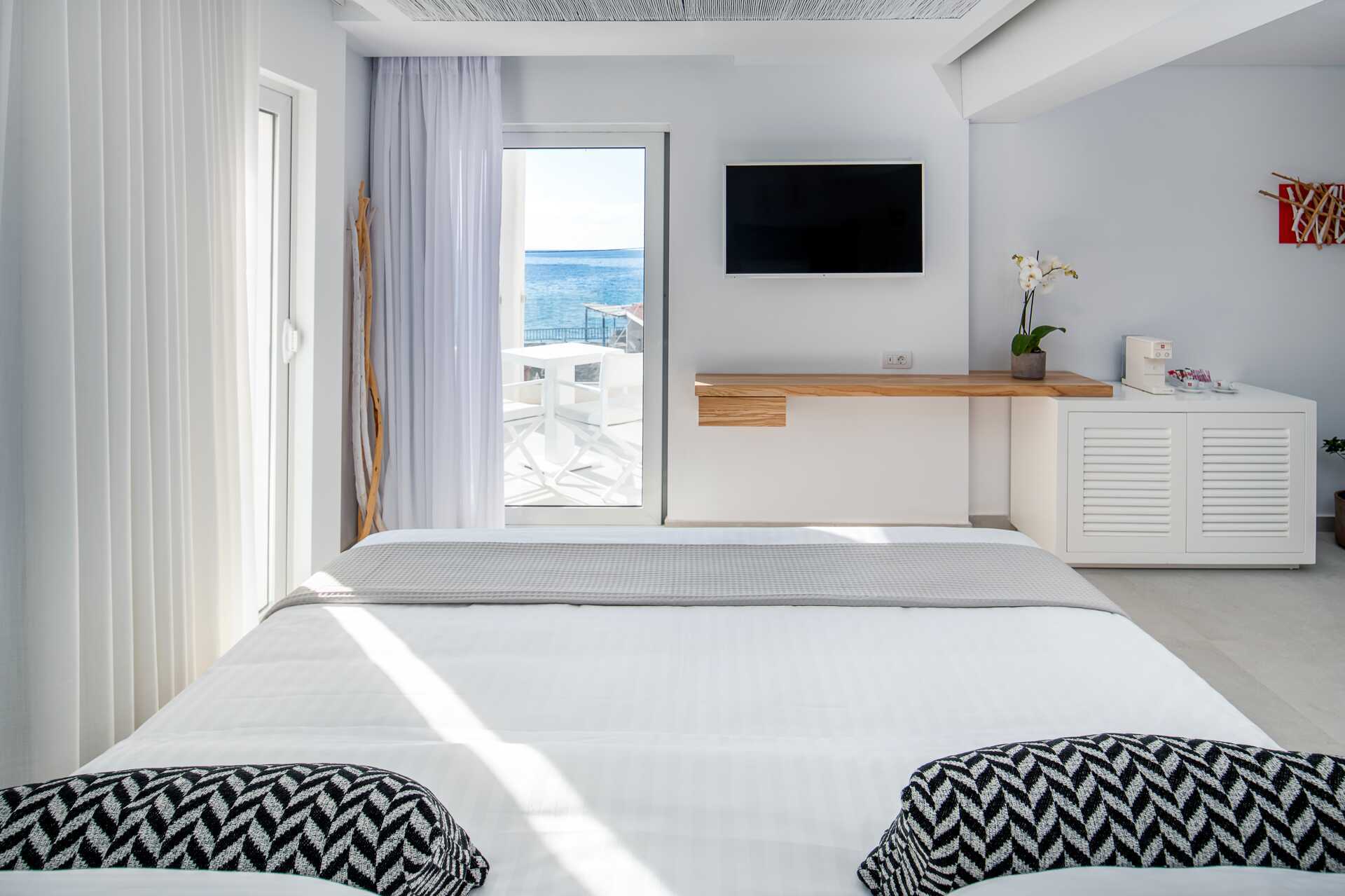 Superior-værelser med balkon eller terrasse og havudsigt. En dobbeltseng. Mulighed for ekstra opredning i sovesofa. Gratis wifi, aircondition og deponering. Køleskab. El-kedel og kaffe/te. Espressomaskine. Tv med internationale kanaler. Badekåber og tøfler. Strandtaske med pool- og badehåndklæder og badesko. Hårtørrer. Badeværelse med bruser og toilet. Rengøring 7 gange om ugen. Børn under to år tæller med i det maksimale antal personer på værelset.