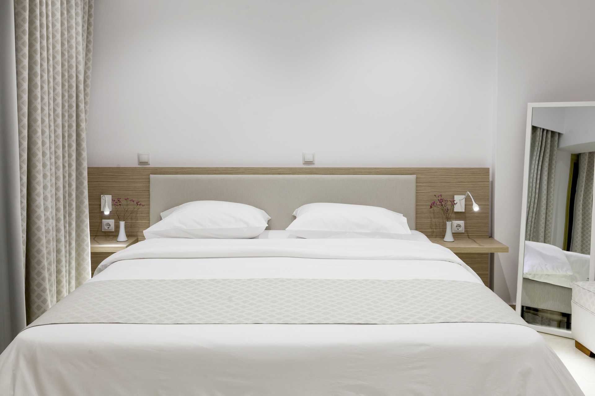Dobbeltværelser med balkon, nogle med delvis havudsigt. En dobbeltseng eller to enkeltsenge. Gratis wifi, aircondition og deponering. El-kedel og kaffe/te. Tv med internationale kanaler. Hårtørrer. Badeværelse med bruser og toilet. Rengøring 6 gange om ugen.