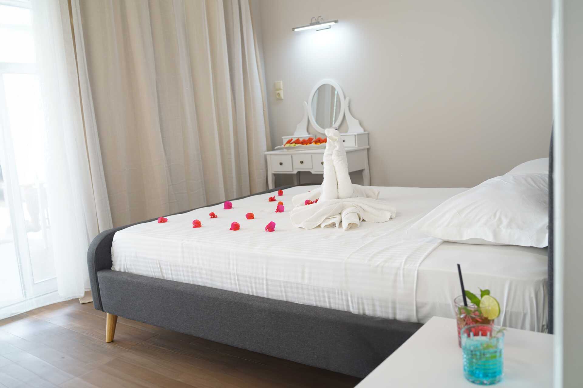 2-værelses suiter med balkon og havudsigt. Suiten har to værelser med en dør mellem rummene, dog går væggen ikke op til loftet og det andet værelse har intet loft. En dobbeltseng eller to enkeltsenge. Mulighed for ekstra opredning i sovesofa. Gratis wifi, aircondition og deponering. Minibar. El-kedel og kaffe/te. Tv med internationale kanaler. Badekåber og tøfler. Hårtørrer. Badeværelse med bruser og toilet. Rengøring 7 gange om ugen.