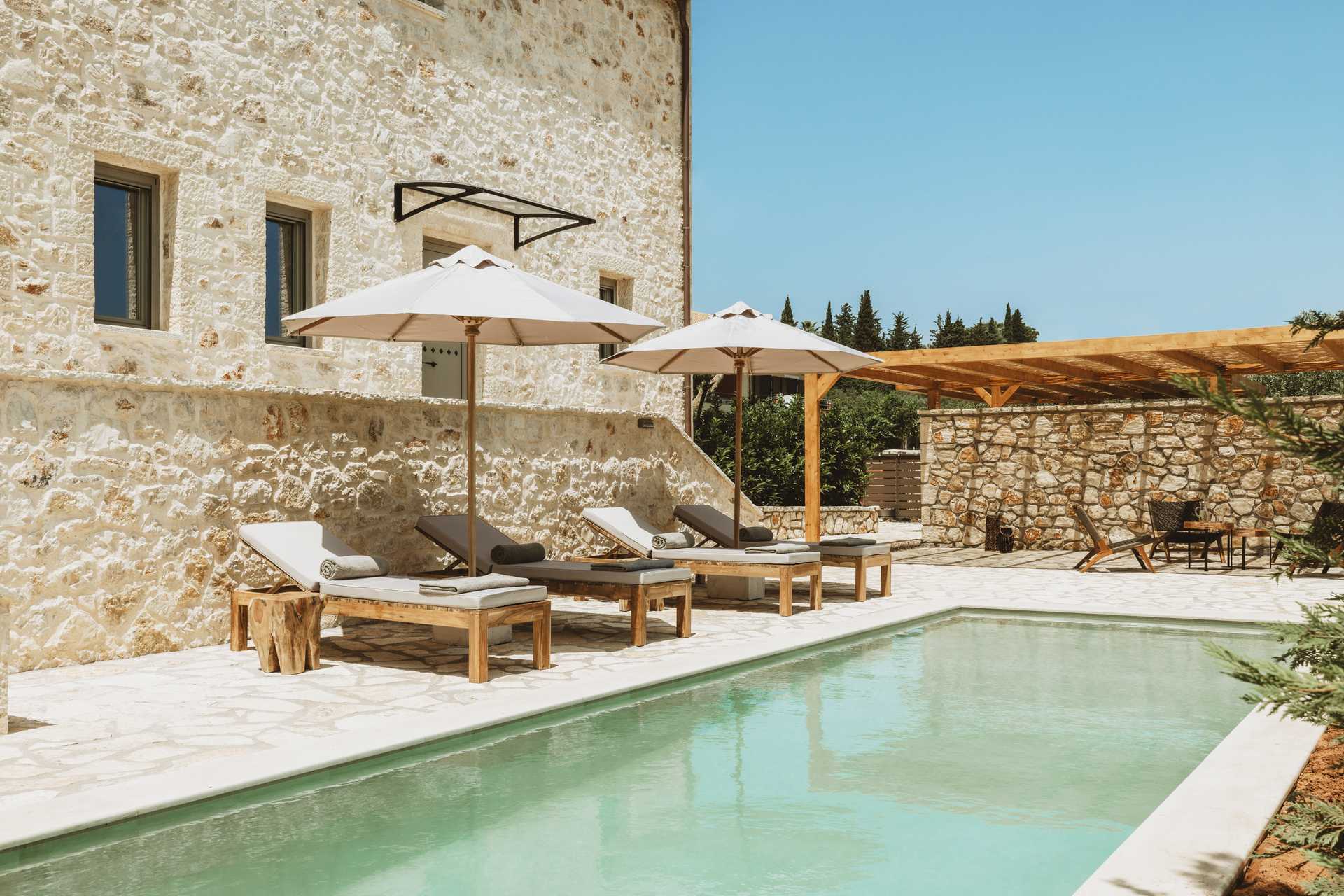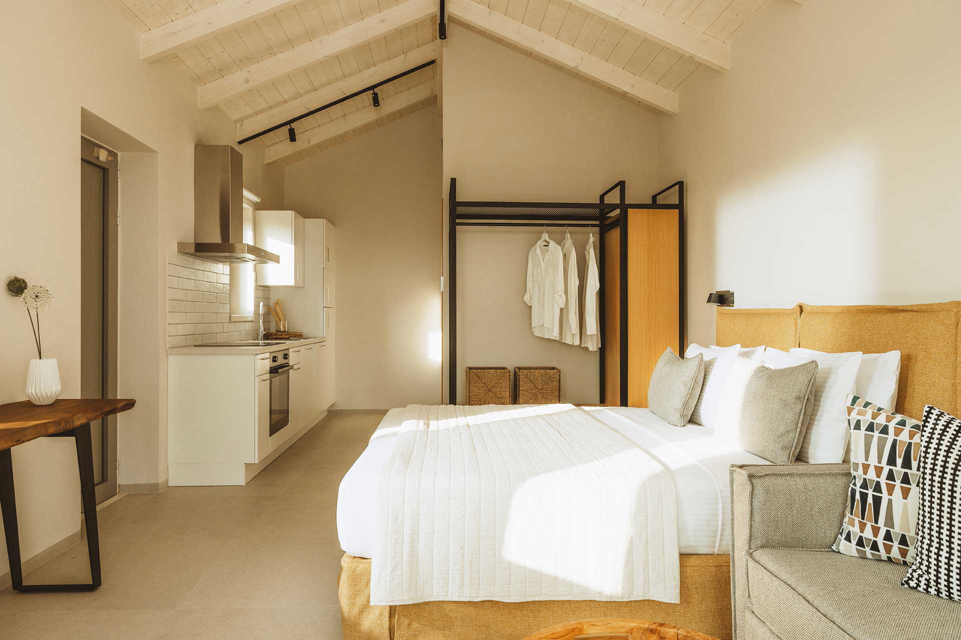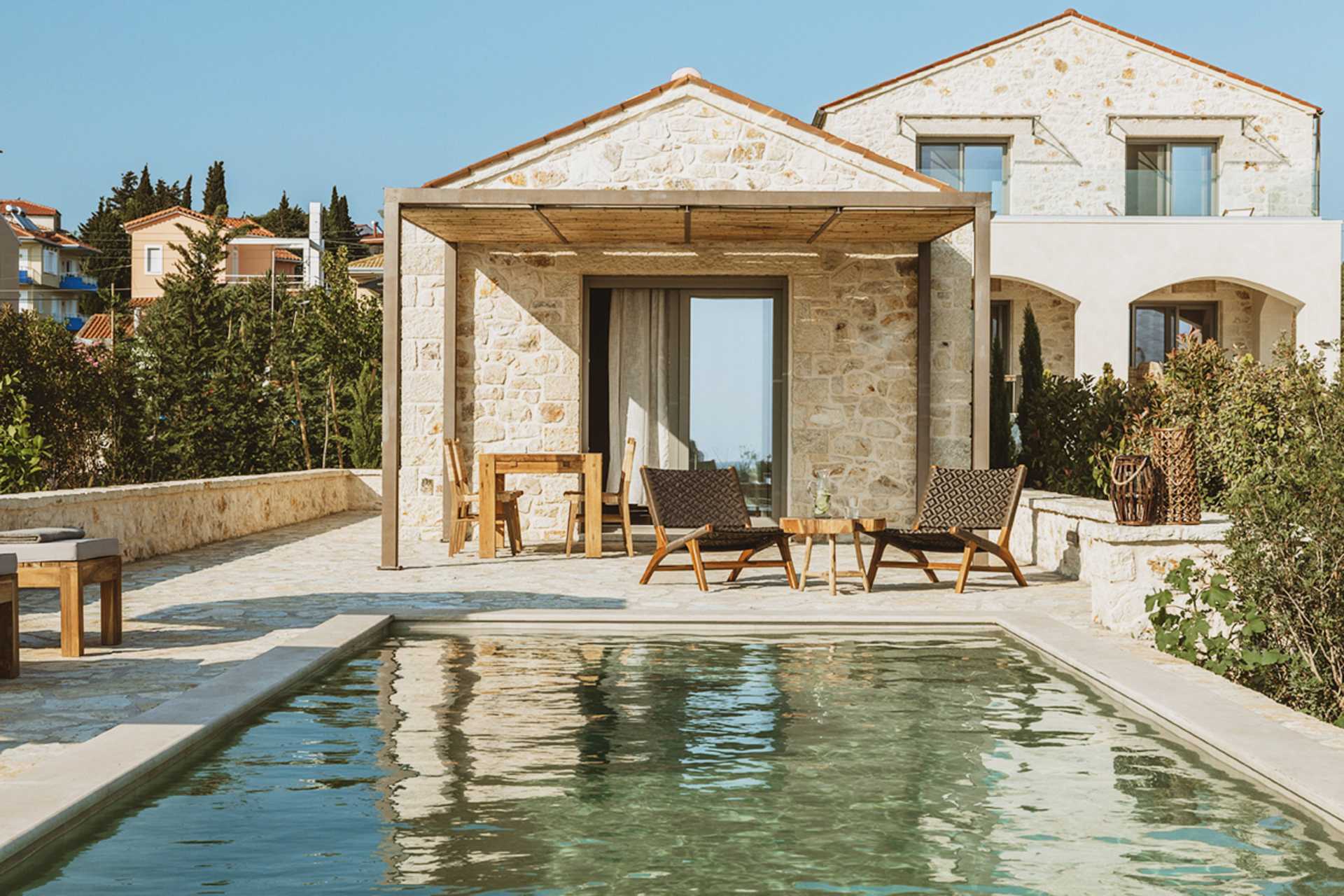 1-værelses villa med privat pool På udepladsen er der et spisebord, loungemøbler samt solstole og parasoller ved poolen. Et kombineret soveværelse med opholdsrum og minikøkken. En dobbeltseng eller to enkeltsenge. Mulighed for ekstra opredninger i sovesofa. Minikøkken med komfur, køleskab og fryser samt godt køkkenudstyr. Gratis wifi, aircondition og deponering. Tv med internationale kanaler. Strygejern og strygebræt. Poolhåndklæder. Badekåber og tøfler. Hårtørrer. Badeværelse med bruser og toilet. Rengøring 5 gange om ugen. Trapper inde og udenfor i villaen, herunder til poolen.