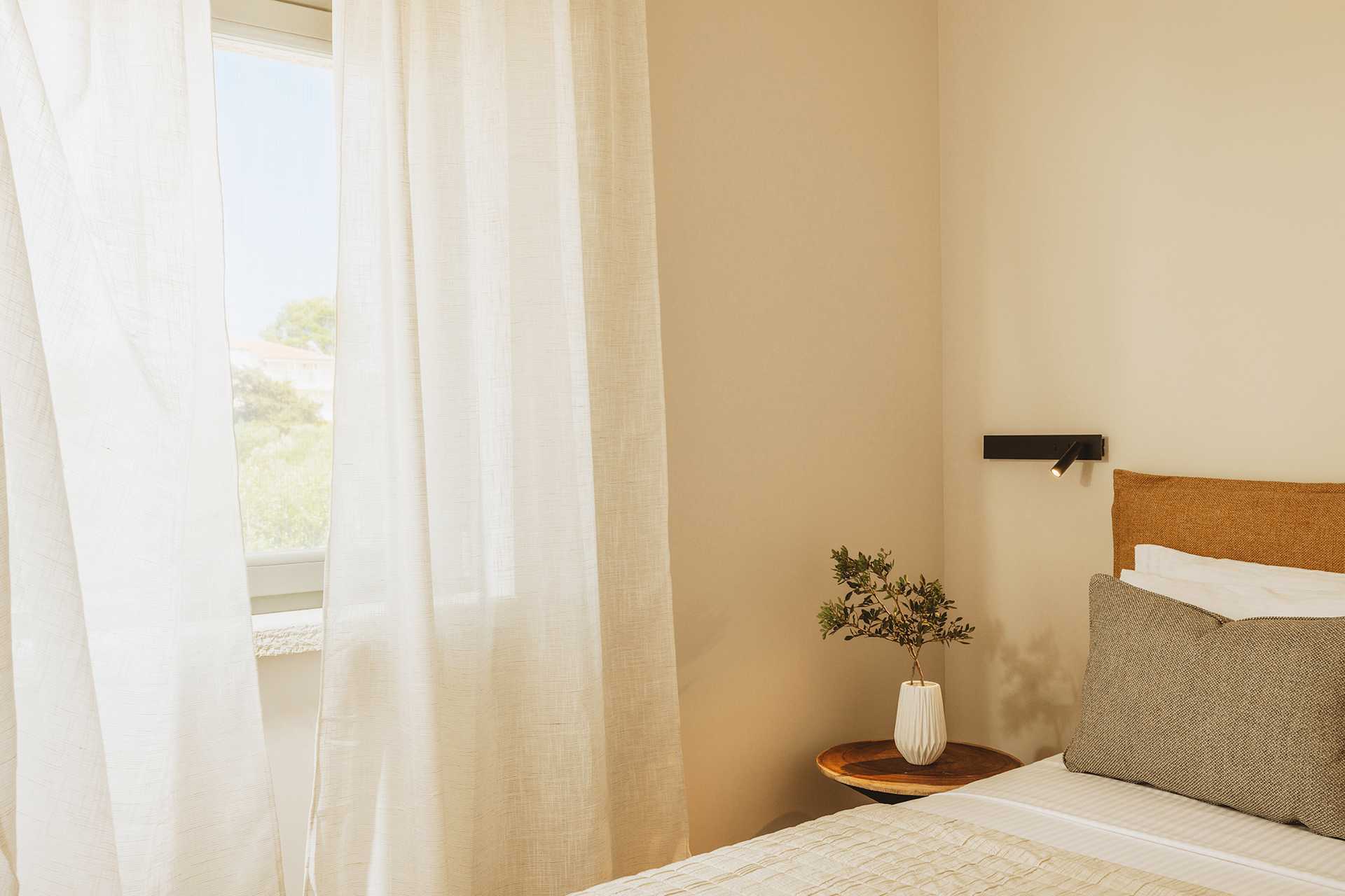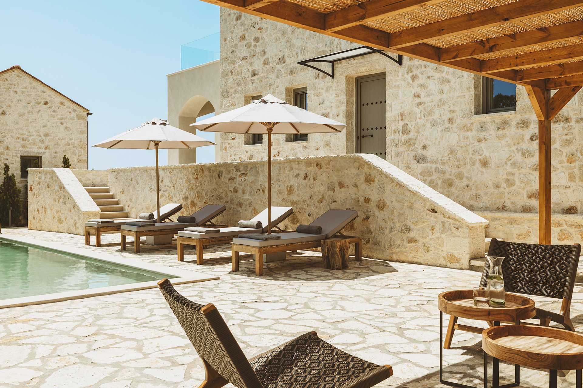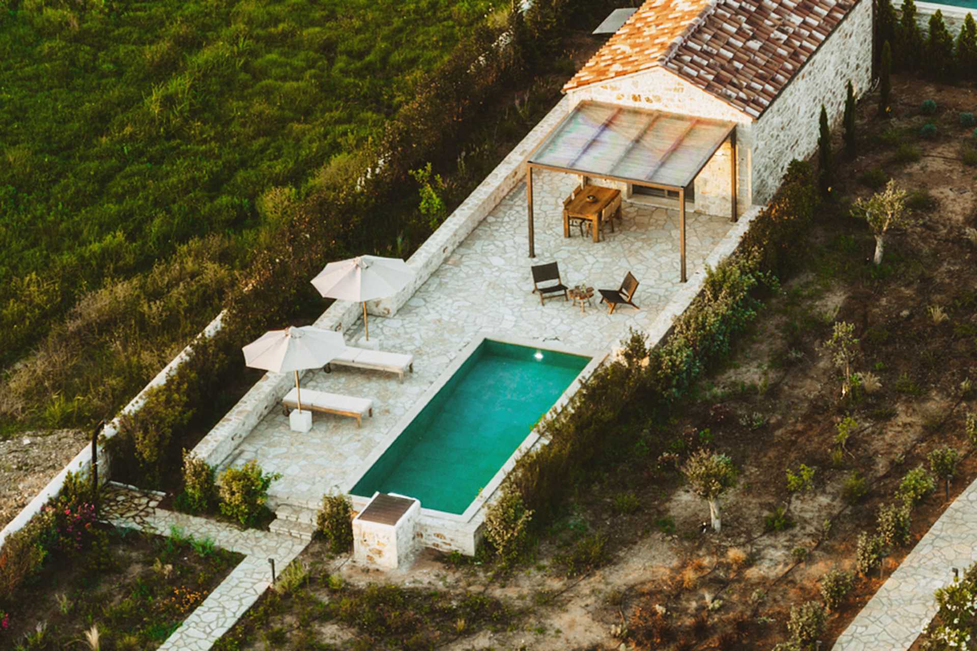 1-værelses villa med privat pool På udepladsen er der et spisebord, loungemøbler samt solstole og parasoller ved poolen. Et kombineret soveværelse med opholdsrum og minikøkken. En dobbeltseng eller to enkeltsenge. Mulighed for ekstra opredninger i sovesofa. Minikøkken med komfur, køleskab og fryser samt godt køkkenudstyr. Gratis wifi, aircondition og deponering. Tv med internationale kanaler. Strygejern og strygebræt. Poolhåndklæder. Badekåber og tøfler. Hårtørrer. Badeværelse med bruser og toilet. Rengøring 5 gange om ugen. Trapper inde og udenfor i villaen, herunder til poolen.