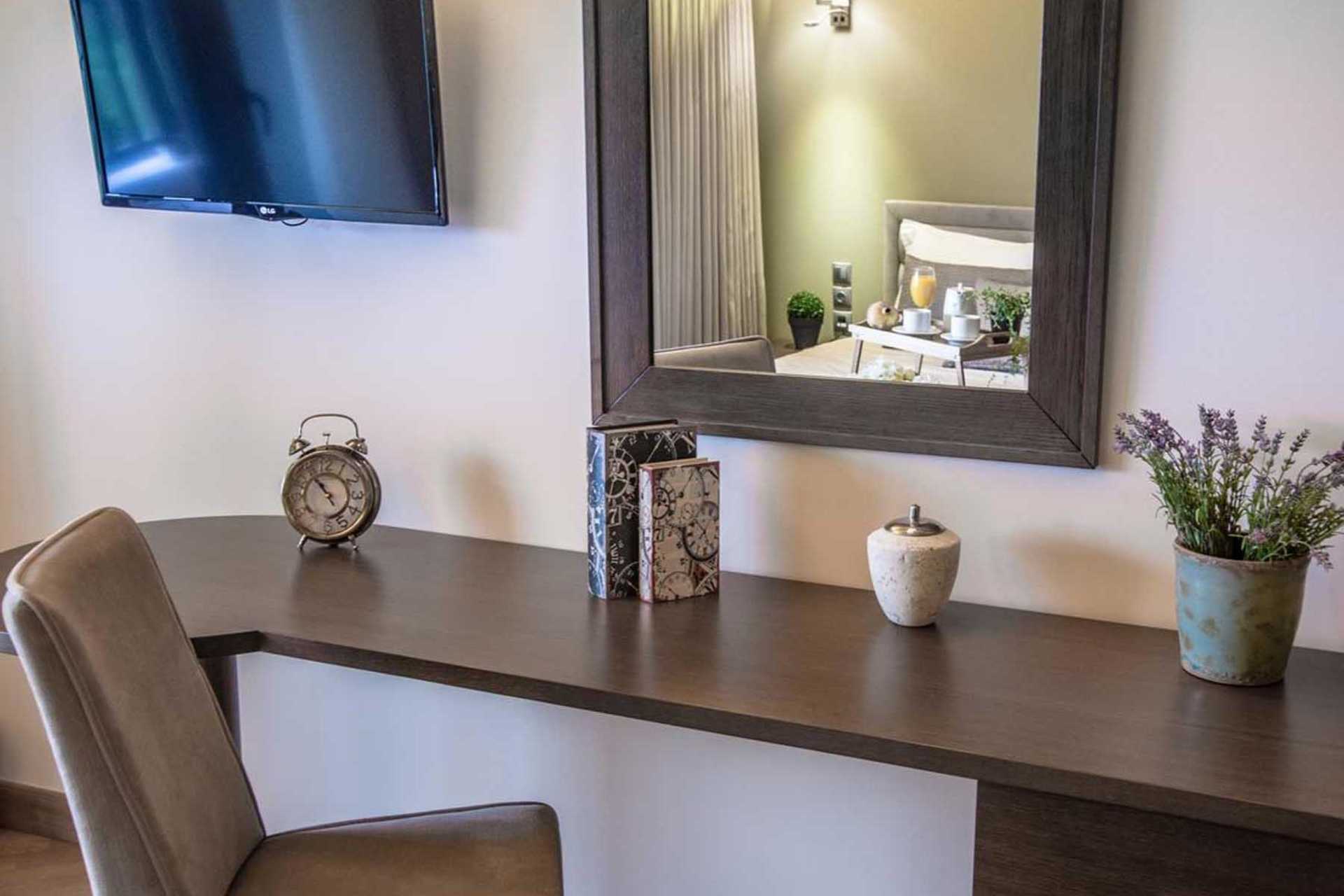 Deluxe-værelser balkon og havudsigt. Dobbeltseng eller to enkeltsenge. Mulighed for en ekstra opredning i en sovesofa eller i en fold ud-stol. Gratis wifi og aircondition. Køleskab. El-kedel. Tv med internationale kanaler. Hårtørrer. Badeværelse med bruser og toilet. Rengøring 7 gange om ugen.