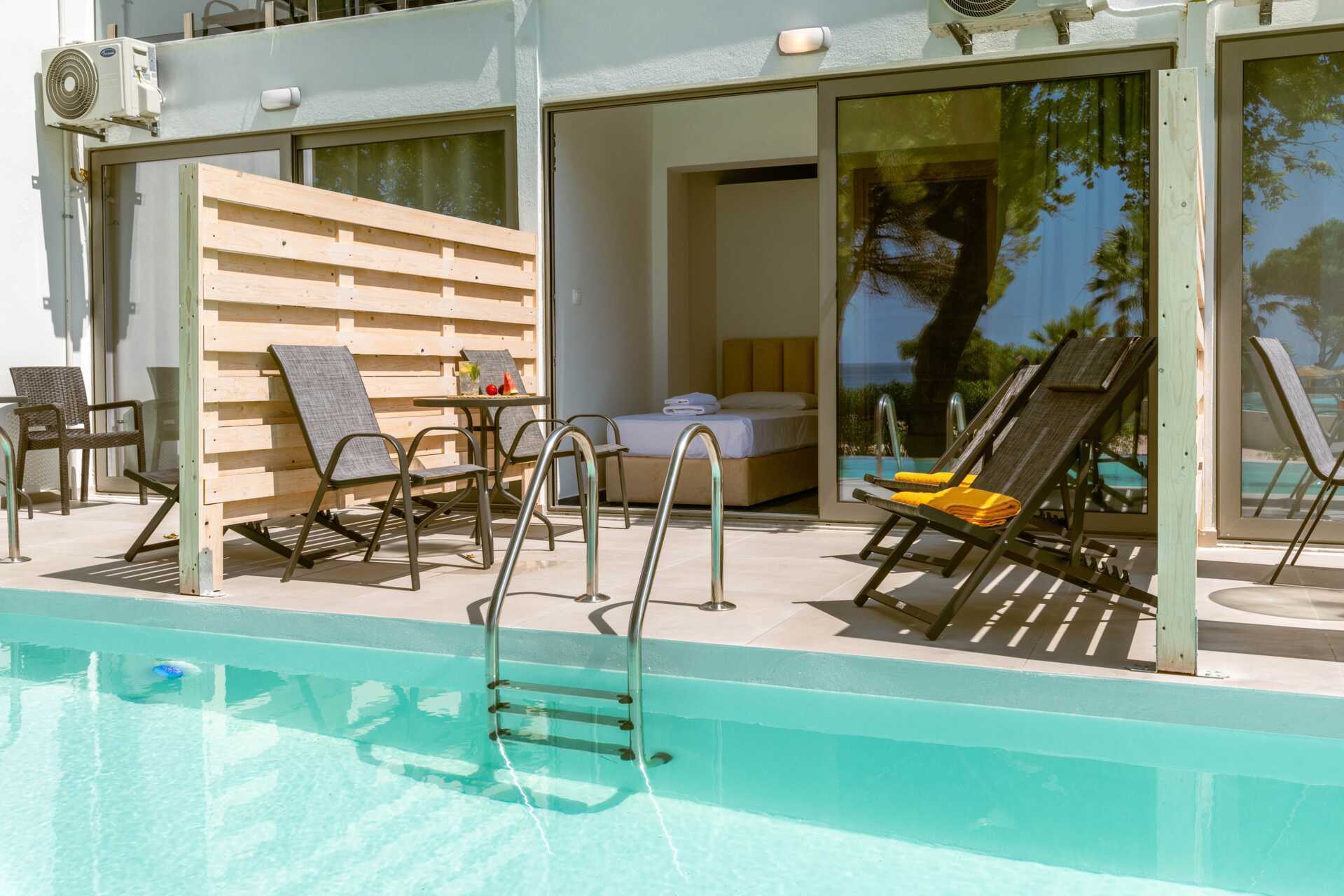 Ninos Grand Beach Hotel & Resort har et lyst interiør med pastelmøbler, stilfulde værelser med både havudsigt og adgang til delt pool, restaurant og den bedste beliggenhed - direkte på sand- og stenstranden i Kastrosukia.
