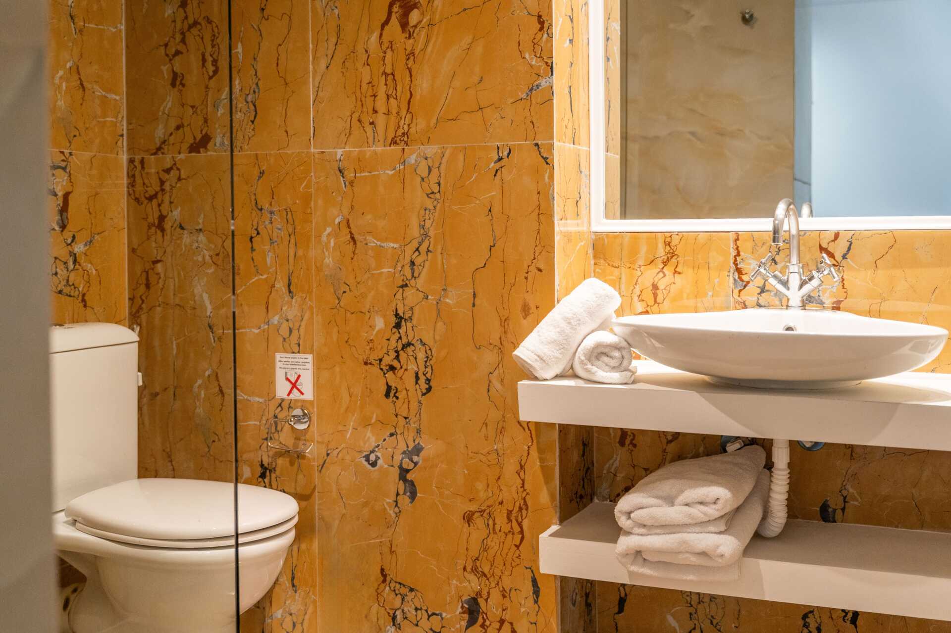 Dobbeltværelser med balkon, nogle med havudsigt. En dobbeltseng. Mulighed for ekstra opredning i sovesofa. Gratis wifi, aircondition og deponering. Køleskab. Tv med internationale kanaler. Hårtørrer. Badeværelse med bruser og toilet. Rengøring 7 gange om ugen.