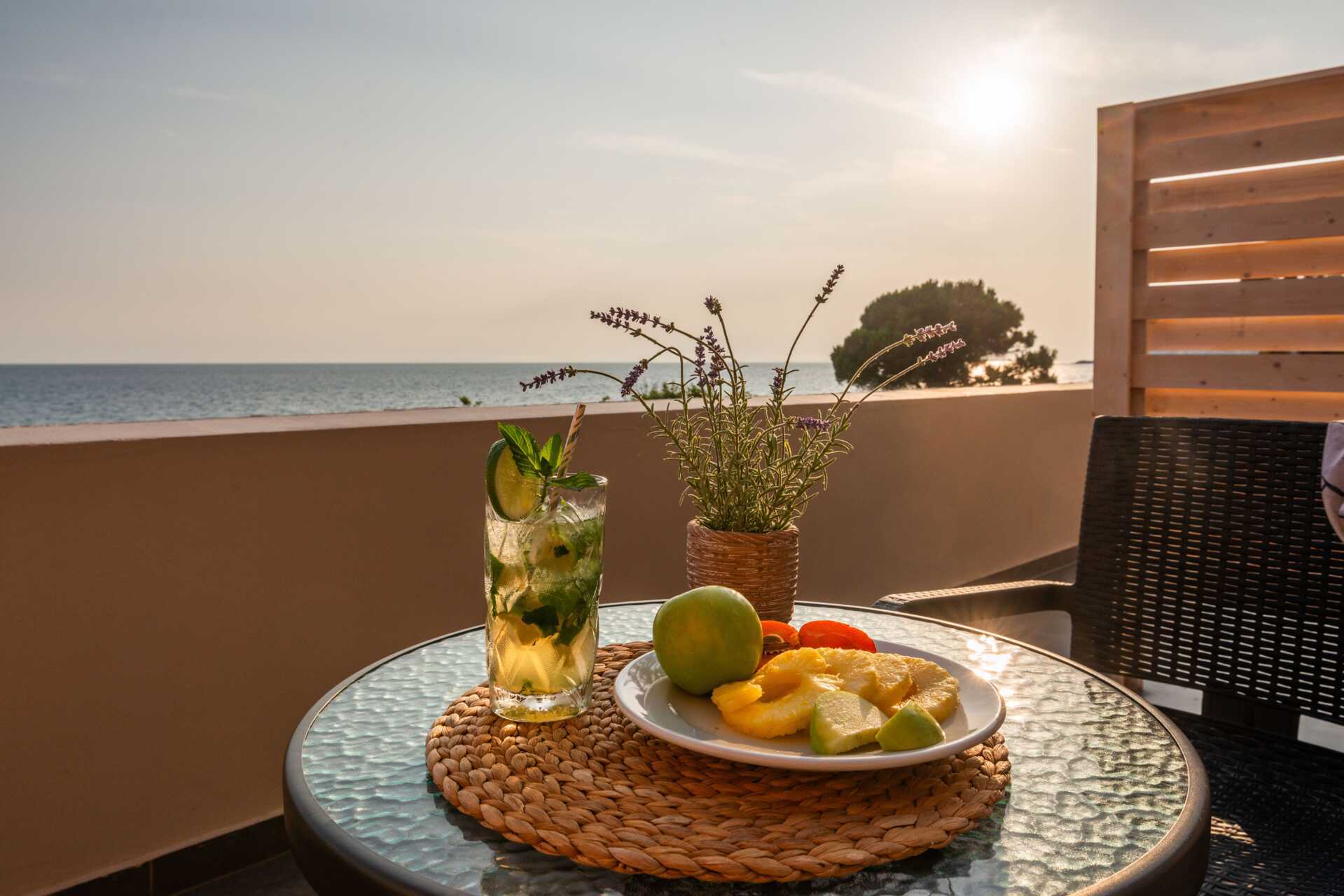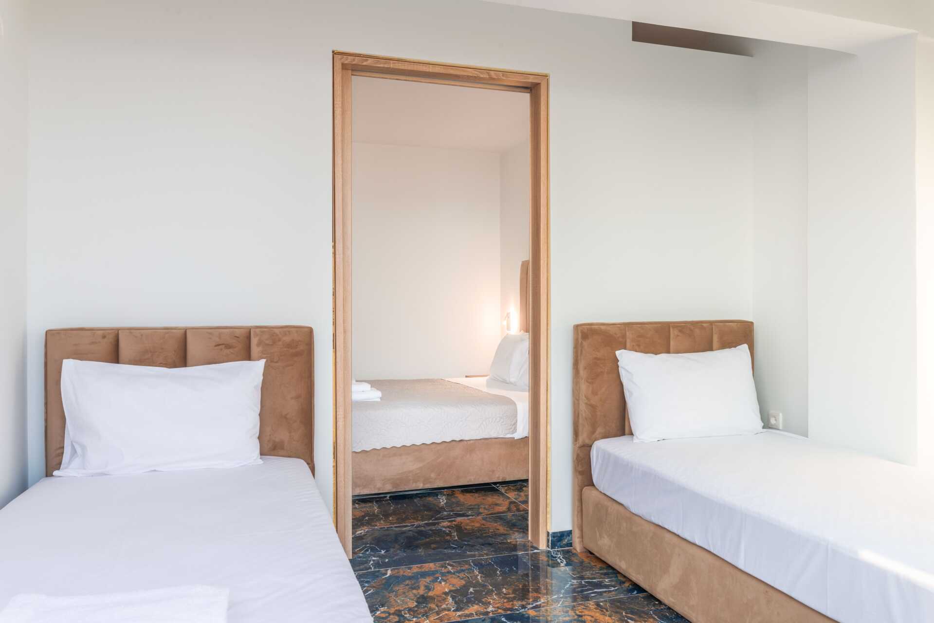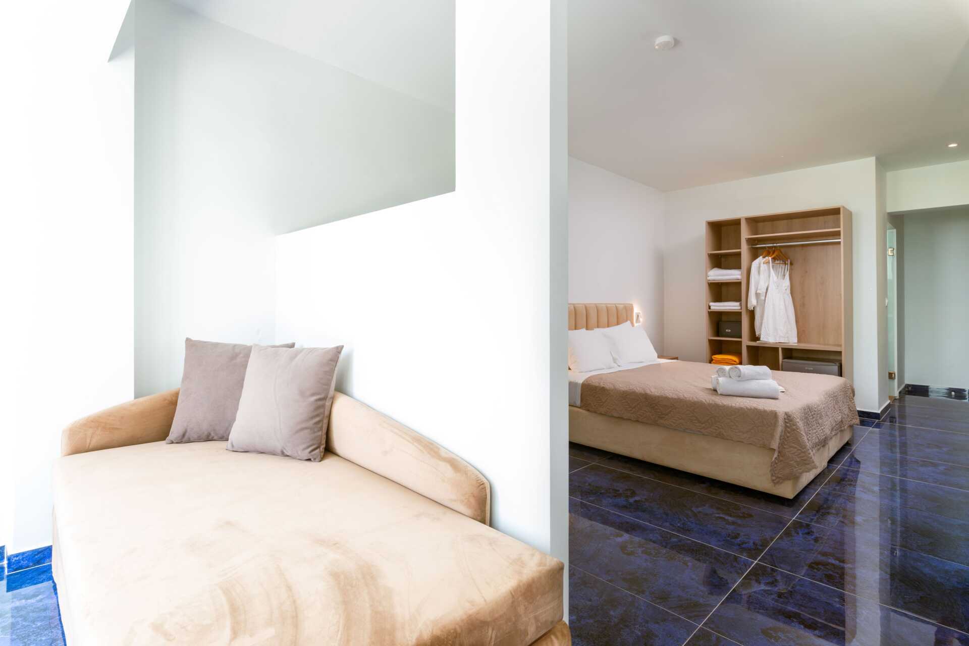 Suiter med balkon med havudsigt. Suiterne består af to værelser. En dobbeltseng. Mulighed for en ekstra opredninger i en sovesofa. Gratis wifi, aircondition og deponering. Køleskab. Nespresso-kaffemaskine. Tv med internationale kanaler. Hårtørrer. Badeværelse med bruser og toilet. Rengøring 7 gange om ugen. Børn under to år tæller med i det maksimale antal personer på værelset.