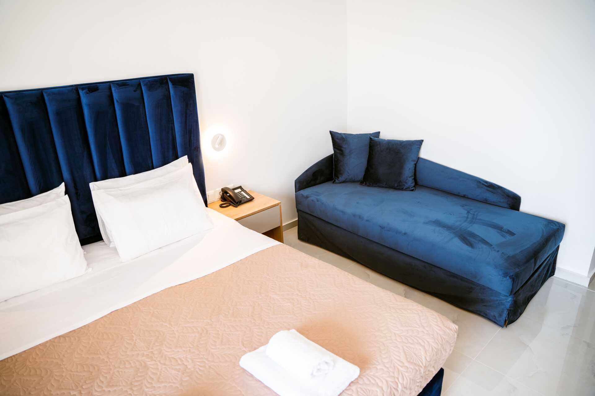 Familie-værelse superior med balkon, nogle med havudsigt. En dobbeltseng. Mulighed for ekstra opredning i køjeseng. Gratis wifi, aircondition og deponering. Køleskab. Tv med internationale kanaler. Hårtørrer. Badeværelse med bruser og toilet. Rengøring 7 gange om ugen. Børn under to år tæller med i det maksimale antal personer på værelset. Familie-værelse superior består af ét værelse.