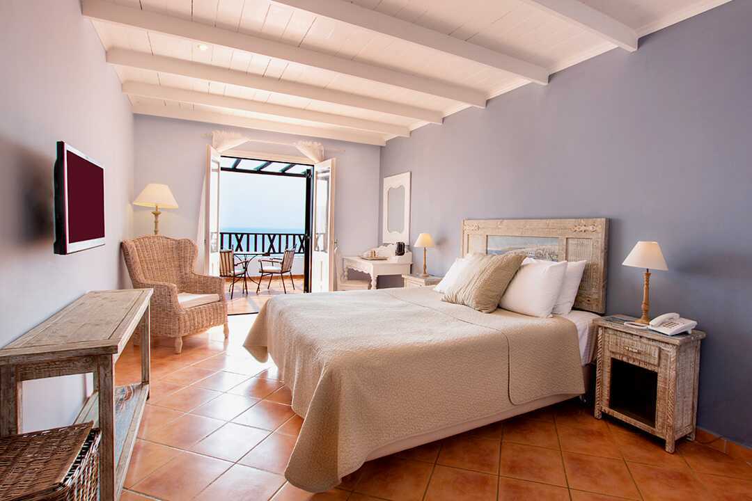Superior-værelser med balkon eller terrasse med delvis havudsigt eller med balkon og havudsigt. En dobbeltseng. Mulighed for ekstra opredning i enkeltseng. Gratis wifi, deponering og aircondition. Minibar. El-kedel og kaffe/te. Kaffemaskine, fire kapsler indgår, du kan købe flere i hotelbaren. Tv med internationale kanaler. Hårtørrer. Badeværelse med badekar eller bruser og toilet. Rengøring 6 gange om ugen.