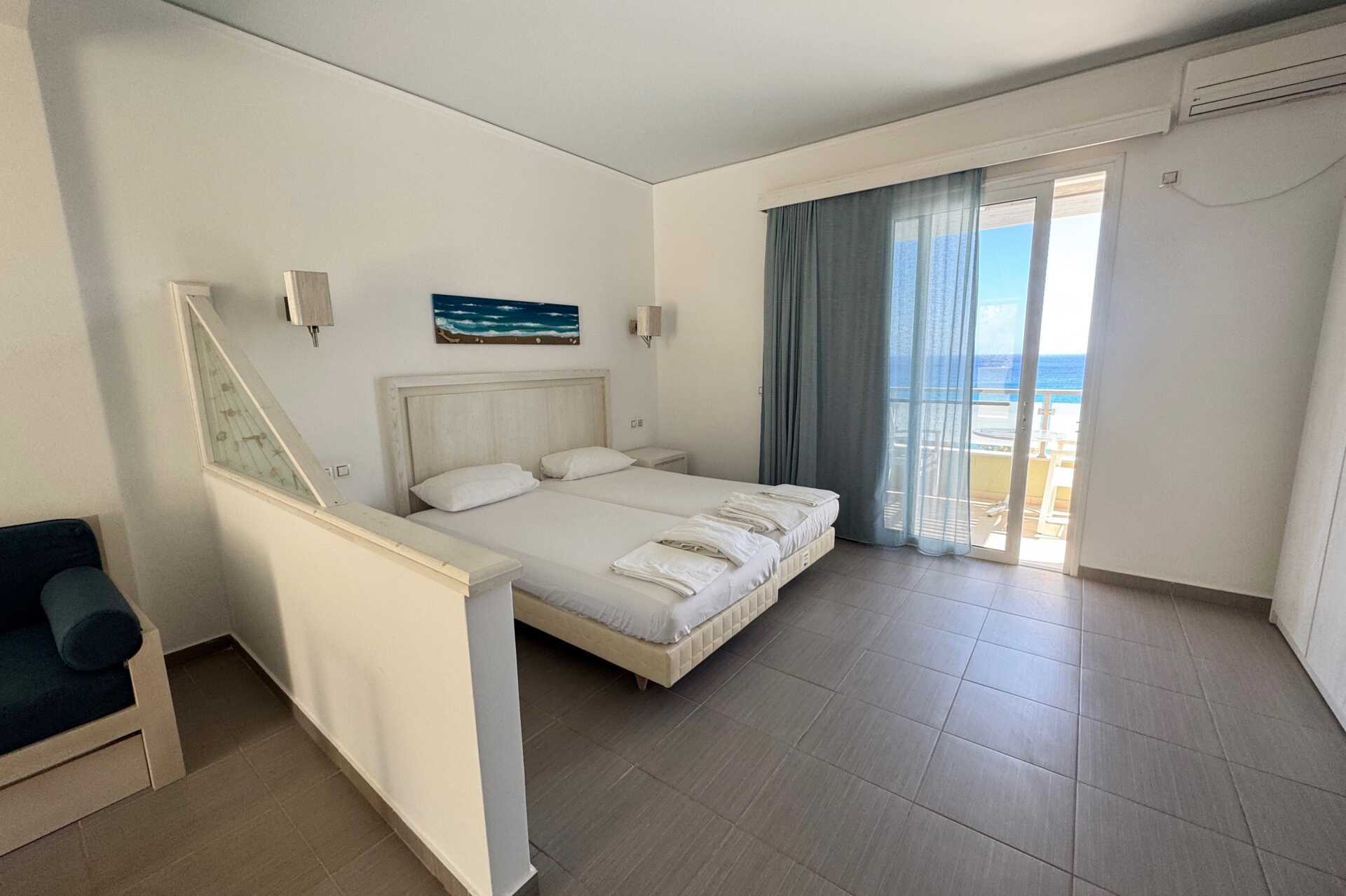 På det dejlige hotel, Almyra Village, bor du som nabo til havet i store og moderne indrettet lejligheder. Hotelbygningerne ligger på en skråning, og ved poolområdet kan du nyde svalende dyp i poolen med den skønneste udsigt over havet og stranden. Aldersgrænsen på hotellet er 12 år.