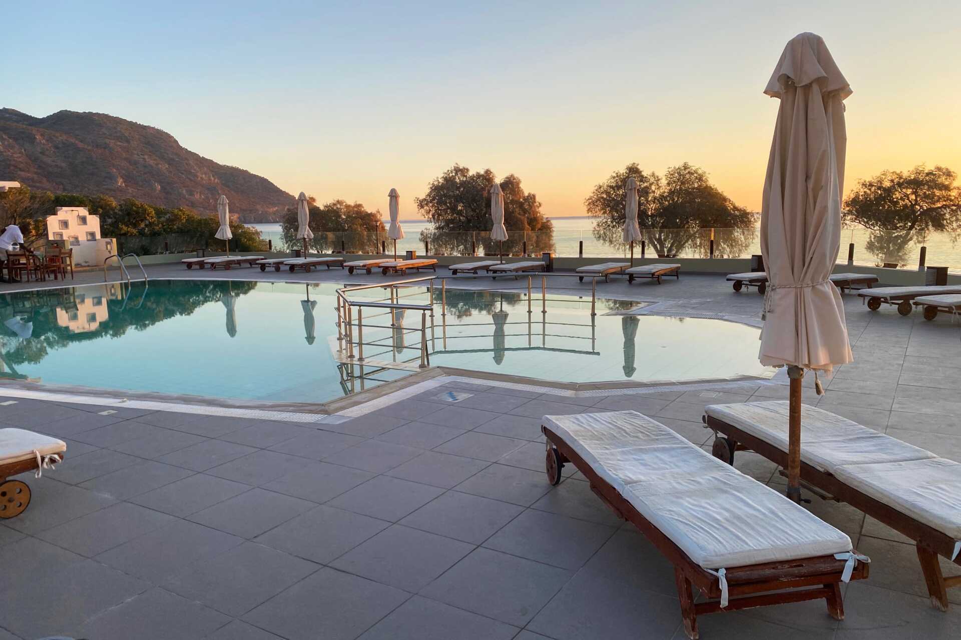 Åbningstider ved pool 10:00 til 18:00 er ikke passende. Dvs. morgen eller aften dukkert er ikke muligt. Vi måtte ikke medbringe hotellets badehåndklæder til strand og det var ikke beskrevet forud for rejsen