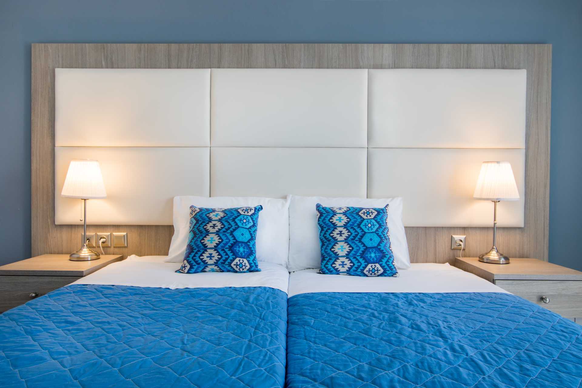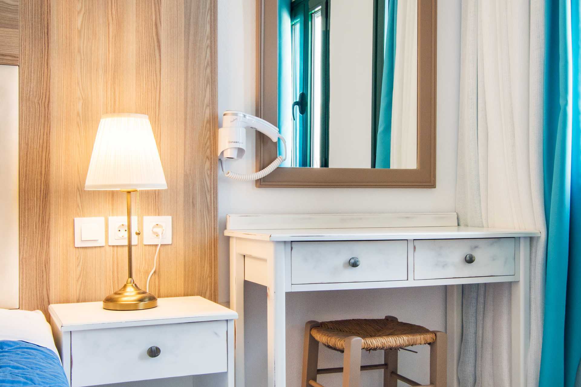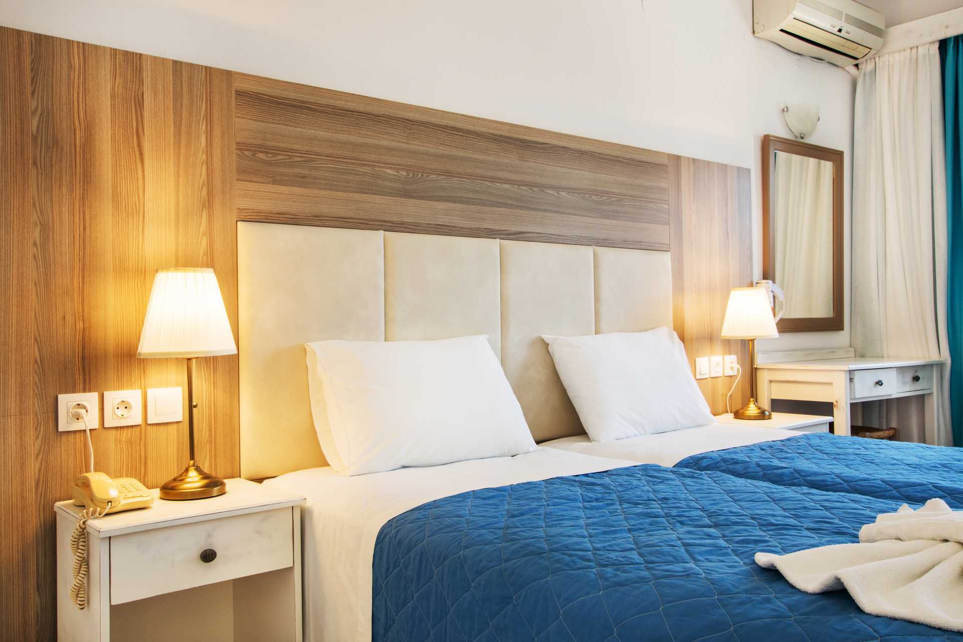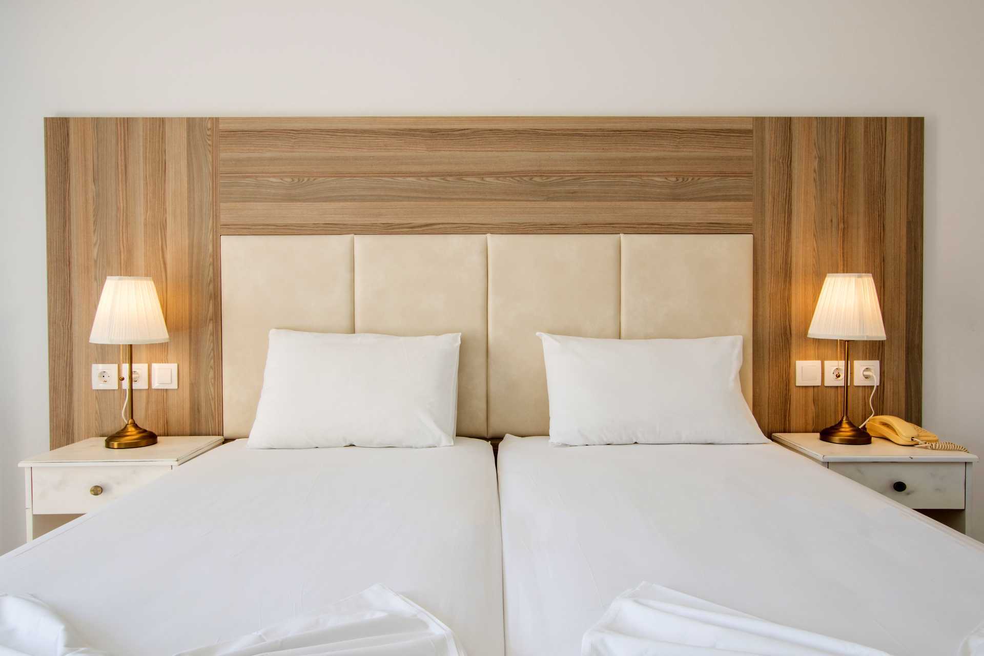 To-værelses lejligheder med balkon og havudsigt eller med terrasse. Soveværelse og kombineret opholdsrum med minikøkken. To enkeltsenge. Mulighed for ekstra opredning i sovesofa eller i enkeltseng. Minikøkken med køleskab, fryser, kogeplader, el-kedel og enkelt køkkenudstyr. Gratis wifi. Deponering og aircondition mod betaling. Badeværelse med bruser og toilet. Rengøring 6 gange om ugen.