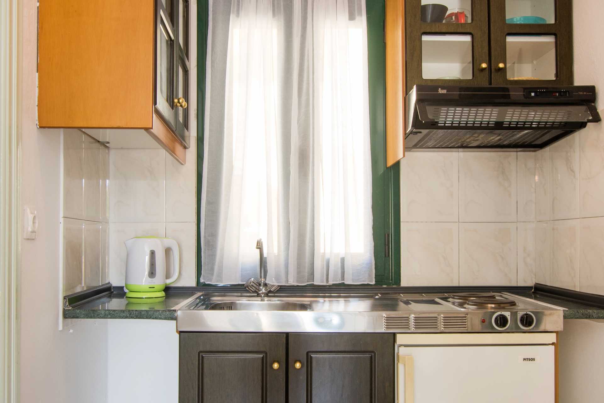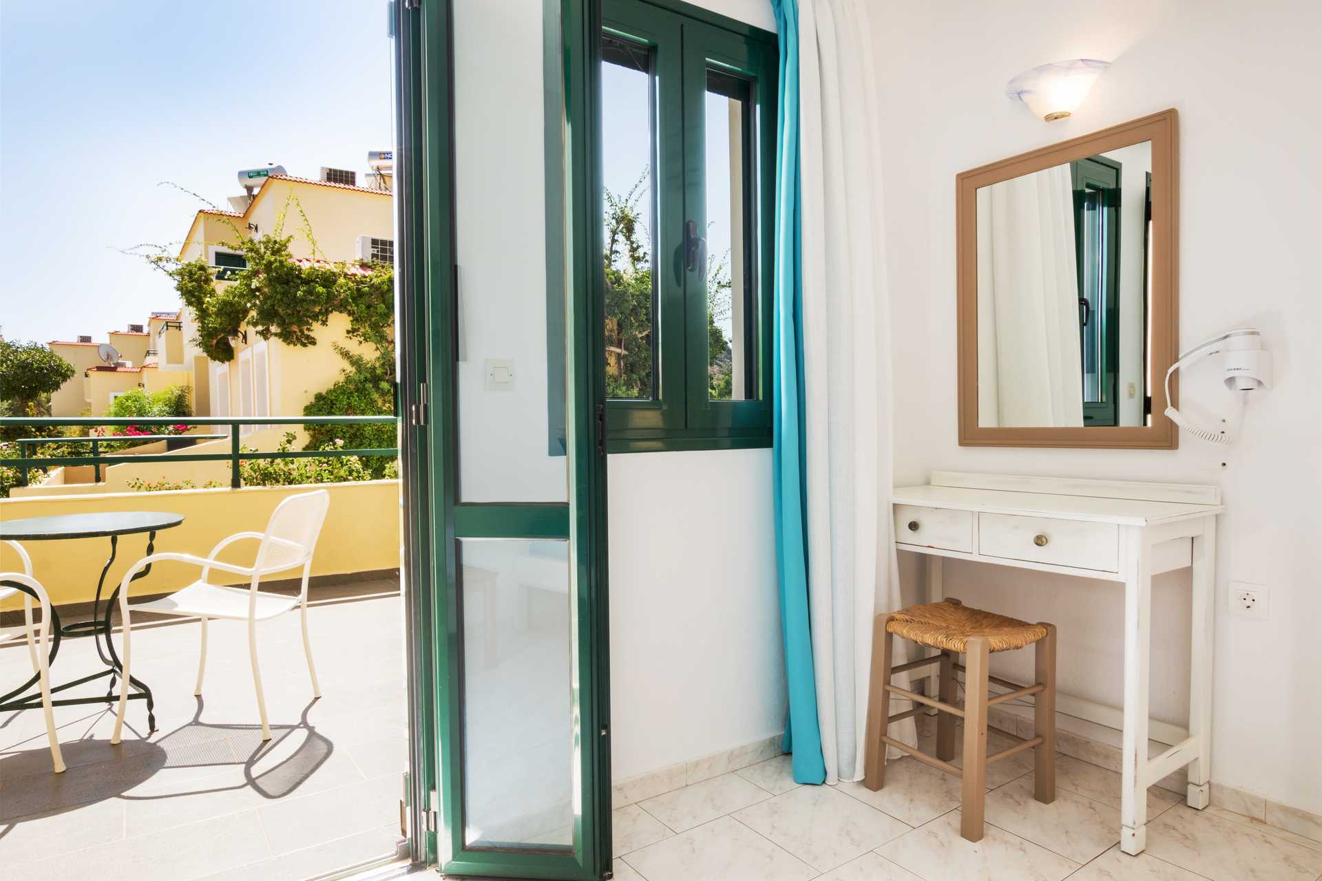 1-værelses lejligheder med balkon eller terrasse i stueplan. Størrelsen på balkonen kan variere. Kombineret soveværelse og minikøkken. To enkeltsenge. Mulighed for ekstra opredning i sovesofa eller i enkeltseng. Minikøkken med køleskab, kogeplader, el-kedel og enkelt køkkenudstyr. Gratis wifi. Deponering og aircondition mod betaling. Tv med lokale kanaler. Badeværelse med bruser og toilet. Rengøring 6 gange om ugen.