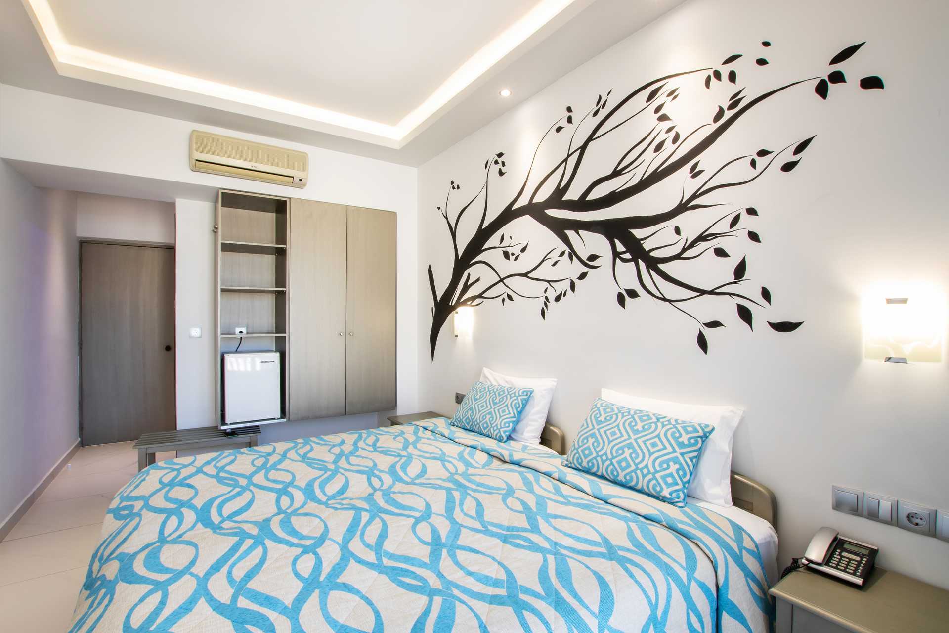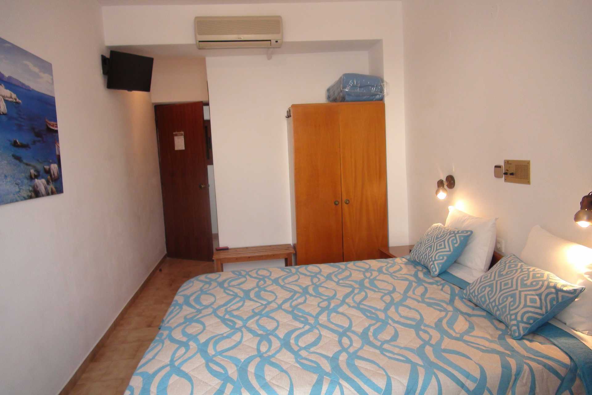 Renoveret dobbeltværelse med balkon i varierende størrelse. En dobbeltseng eller to enkeltsenge. Gratis wifi og aircondition. Køleskab. Tv med internationale kanaler. Hårtørrer. Badeværelse med bruser og toilet. Rengøring 7 gange om ugen. Børn under to år tæller med i det maksimale antal personer på værelset.