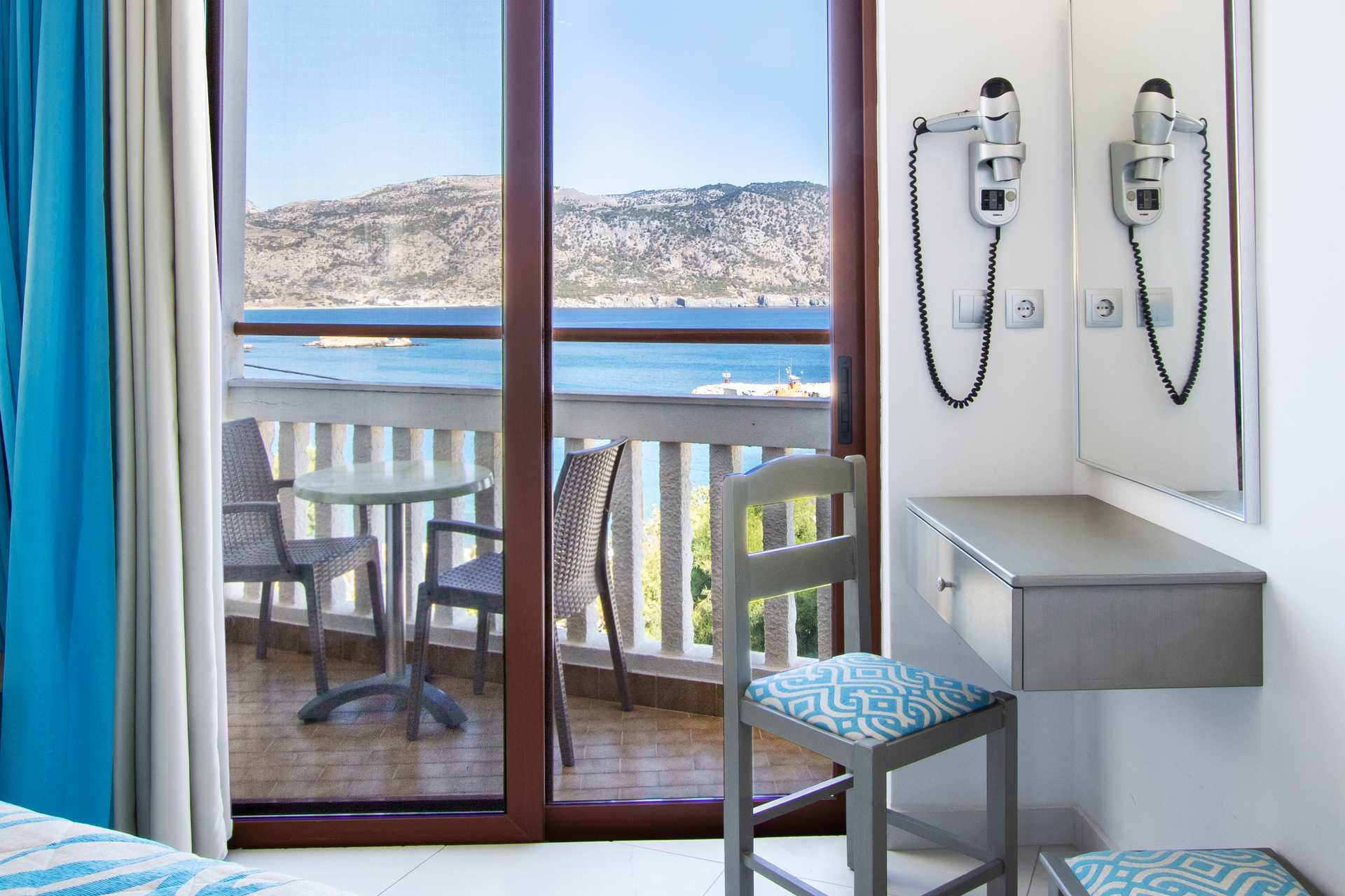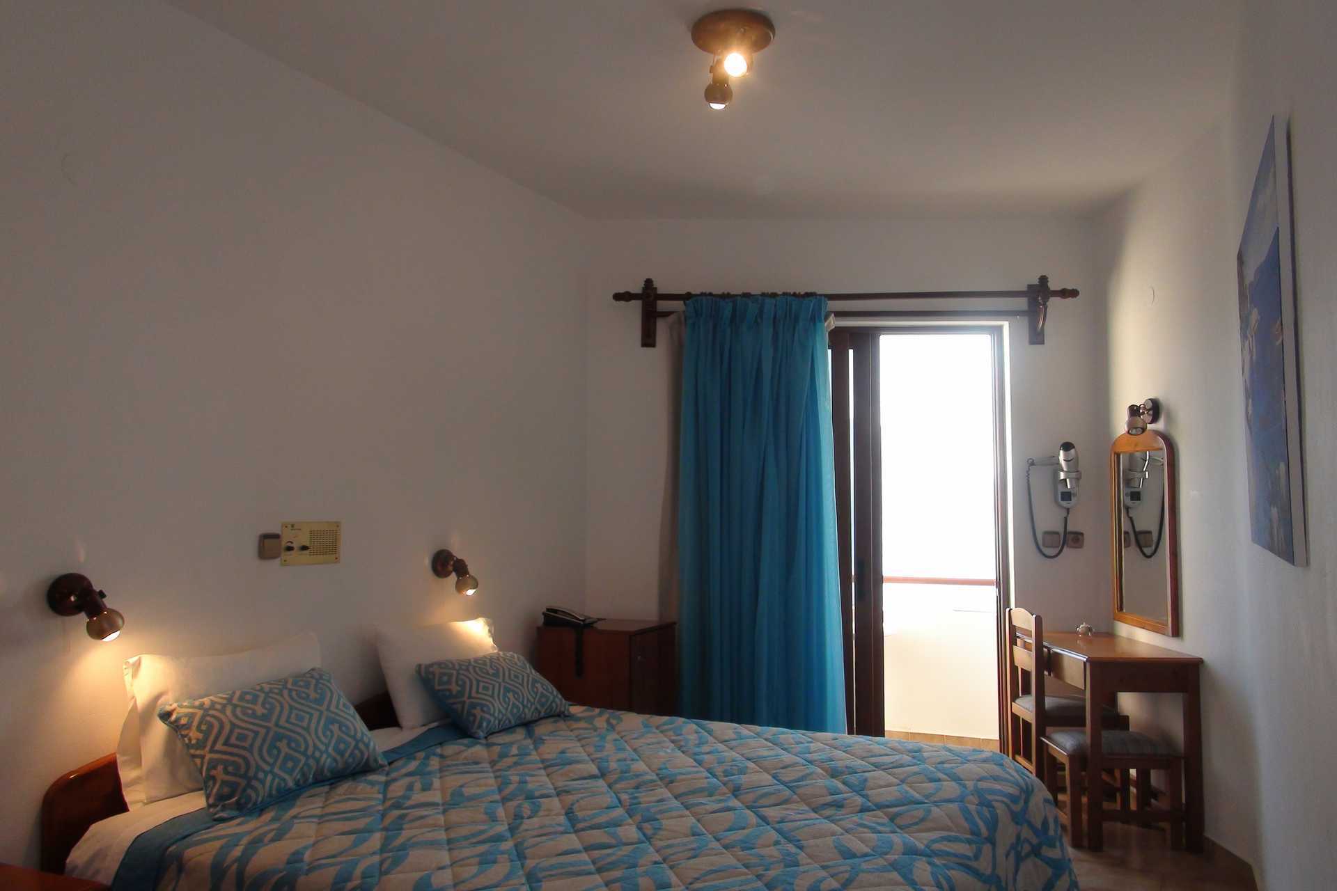 Enkle dobbeltværelser med balkon i varierende størrelse. Gratis wifi og aircondition. Køleskab. Tv med internationale kanaler. Hårtørrer. Badeværelse med bruser og toilet. Rengøring 7 gange om ugen. Børn under to år indgår i det maksimale antal personer på værelset.